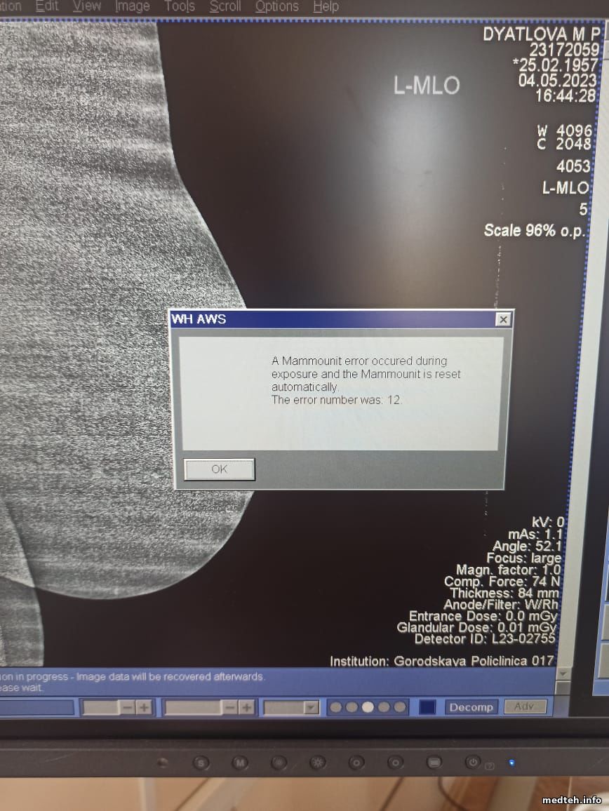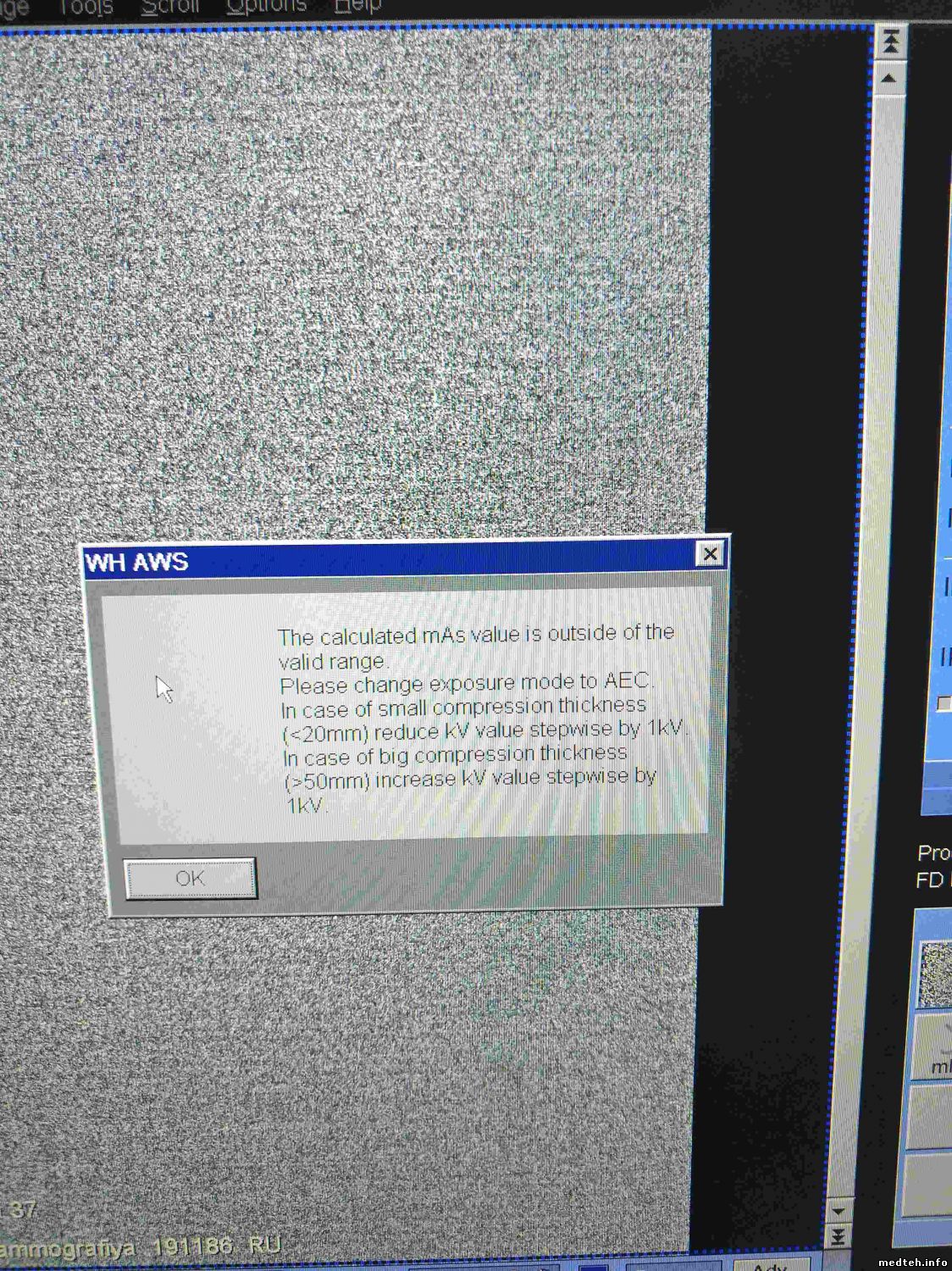 Добрый день! При использовании стереотаксической приставки во время проведения инвазивных манипуляций, обнаруживаются следующие проблемы: 1) Периодически получаются снимки низкого качества при съёмке в ручном режиме с настройками (28kV 60mAs). Съёмка в автоматическом режиме не представляется возможной в связи с тем, что аппарат требует слишком высокую компрессию на молочную железу, что вызывает сильную боль во время проведения процедуры. 2) Во время компрессии аппарат начинает проводить коллимацию, которая длится долгое время.