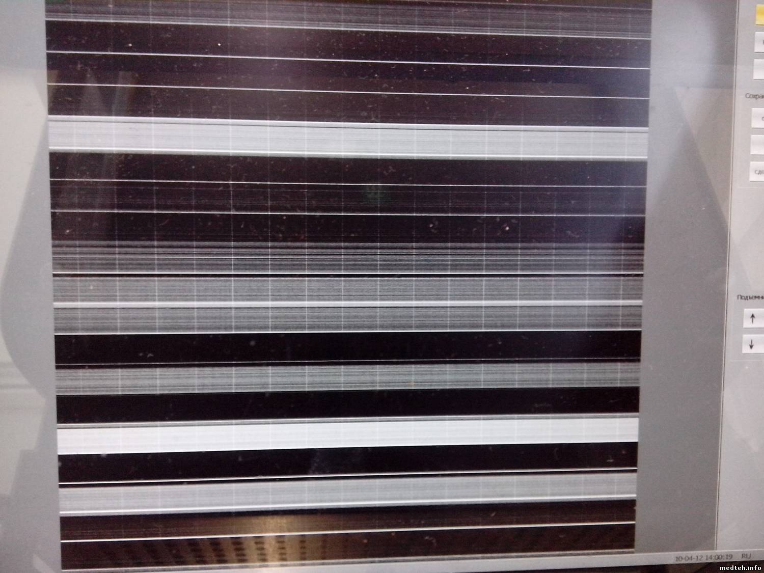 - Детектор движется равномерно без прерывистых рывков (хотя если бы они и были то дефекты были бы на всем изображении)