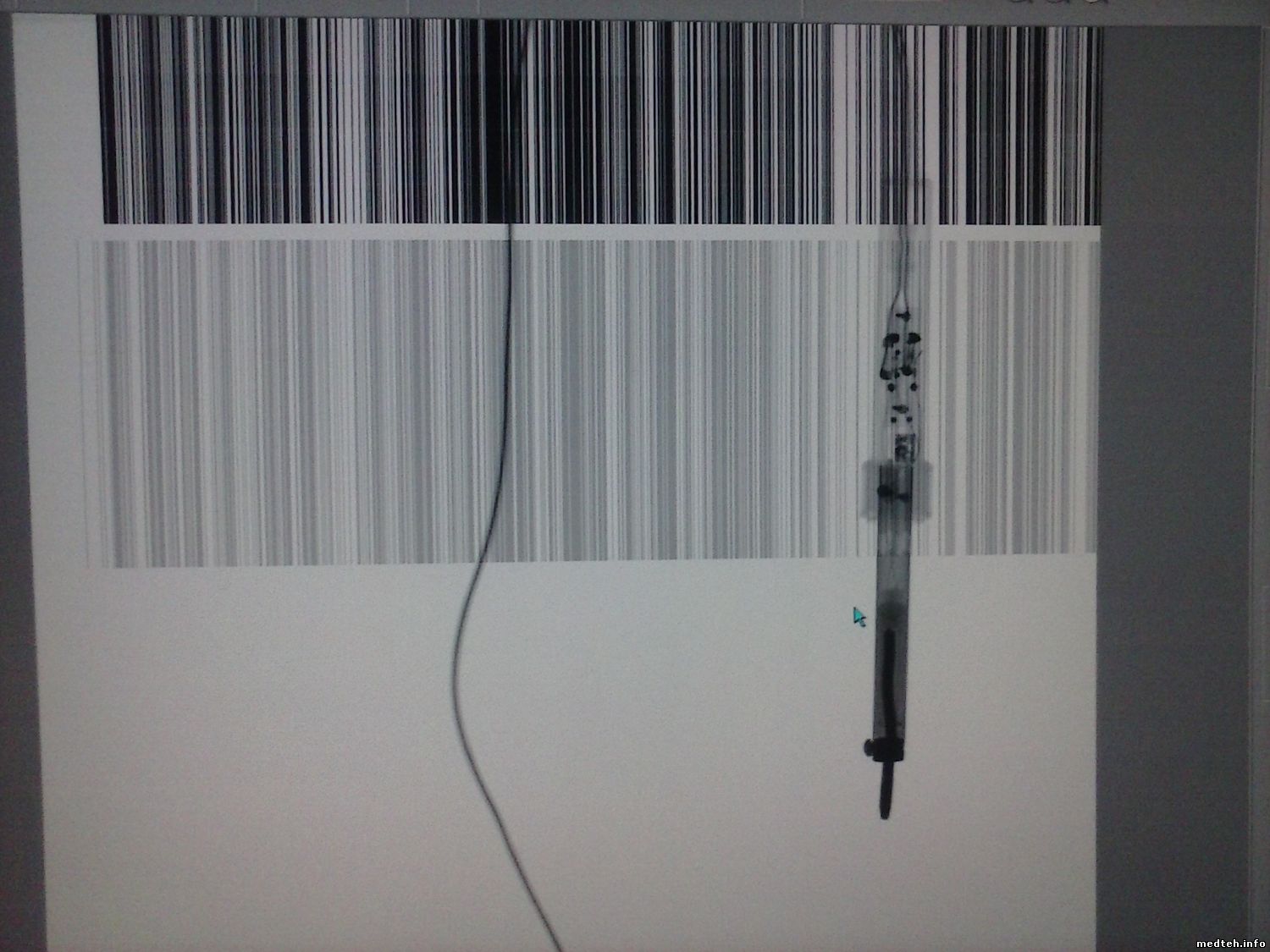 У меня аналогичные полосы и именно в том же месте снимков. При этом снимки полностью пробиты(устраивают врачей абсолютно, кроме этого участка). Проявляются на любом режиме, на каждом снимке. При снятии экранов - никуда не деваются. В чем может быть проблема?