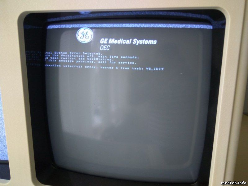 Я раздобыл место где есть такой же рабочий аппарат, такого же года, из той же партии. Снял образ, на такой же винчестер, проверил на аппарате, все гуд. Но на первой С-дуге он не запускается. системник при загрузке пиликает и выдает такую картинку. Кто-нибудь разбирается в GE сервисе.