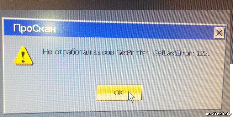 После восстановления операционной системы на докторском компьютере с помощью Acroniсs True image проскан один раз печатает отчет при следующем отправке отчета на принтер на экрана выходить ошибка “Не отработал вызов Getprinter GetLast error 122”. В чем может быть проблема?