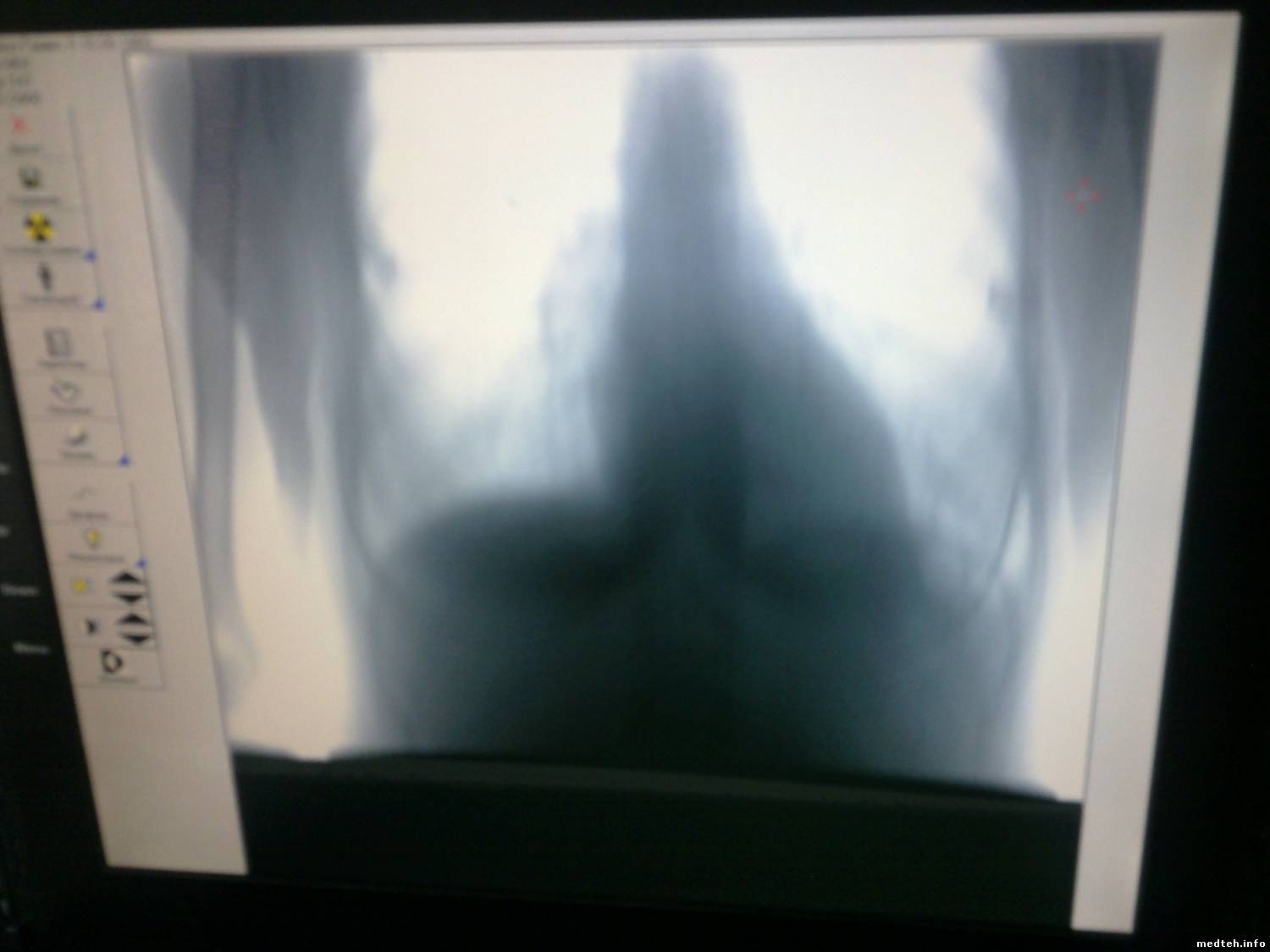 После выполнения снимка на мониторе лаборанта наблюдается нормальный (без видимых дефектов снимок). Но после сохранения снимка в базе и просмотре этого же снимка извлеченном из базы наблюдаются искажения (артефакты) в отдельных частях снимка. Недостатки можно устранить, если изменить первоначальные установки снимка (повысить KV или уменьшить mAs для этого же объекта). Наркоз для всех!