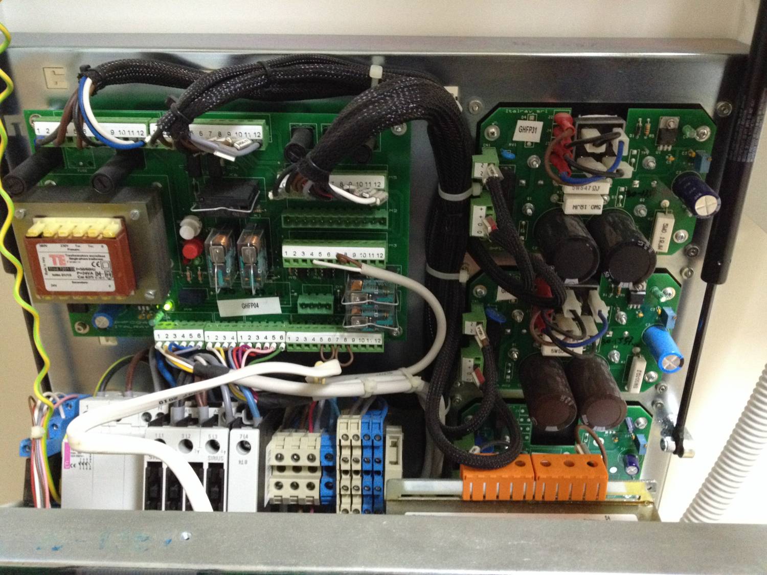 2) После замены тачскрина можно делать снимки , аппарат ошибок не выдает но снимки очень слабые, при проверке калибровки показания на экране соответствуют выбранным токам. Такая проблема на обоих рабочих местах но при этом скопия работает отлично. Подключаем мАс метр в цепь измерения реального тока и что мы там видим. При скопии стрелка мАс метра отклоняется, делаем снимки мАС метр стоит на обоих рабочих местах. Да поднакал и форсаж визиализируються. Подозрения на генераор. При вскрытии генератора обнаружен выгоревший контакт в в\в переключателе на большом фокусе ( все восстанавливаем). При проверки генератора у нас, подымаем высокое до 60 кв на выходе , проблем нет. Везем его назад и ставим на место. Подключаем мАс метр и опять то же самое реальный ток через трубку при снимке не наблюдается , хотя при скопии есть. Разбираемся со схемами и оказывается что реальный ток через трубку можно корректировать подстроечным потенциометром в схеме измерения тока и только потом это значение идет на ЦП. Снова подключаем мАс метр в режиме калибровки подымаем значения накала пока не получаем 100 мА на нашем мАс метре, теперь потенциометром добиваемся , чтобы значения тока измеренного на дисплее соответствовало 100 мА а не так как раньше больше 1000 мА. После этого проводим калибровку обоих рабочих мест. Делаем пробные снимки убеждаемся что все работает проверяем реальные токи и ток измеренный который отображается на дисплее, отдаем аппарат в работу. После первого снимка на пациенте , лаборант сказала , что такие режимы и были до неисправности.