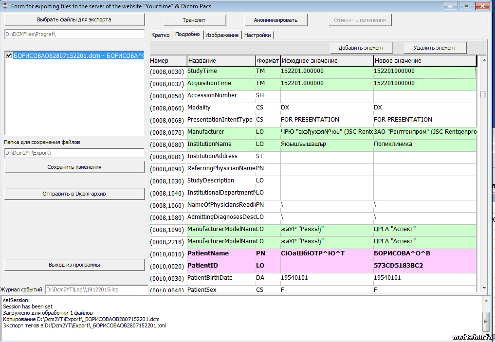 Я специально для автоматической обработки таких "неправильных" дайкомов и отправки их на дайком-сервер написал программку на делфи, которая правит эти теги. Так как каждый производитель придумывает какой-то свой формат, то пока полной универсальности не могу добиться. Поэтому, если у вас есть возмоность, киньте мне на почту свой вариант dcm для экспериментов. Я проверю на нем свою прогу и, если вам таковая будет нужна, то вышлю вам адаптированный вариант.