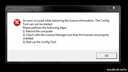 "An error occured while retreiving the licence information. The config tool cannot be started"