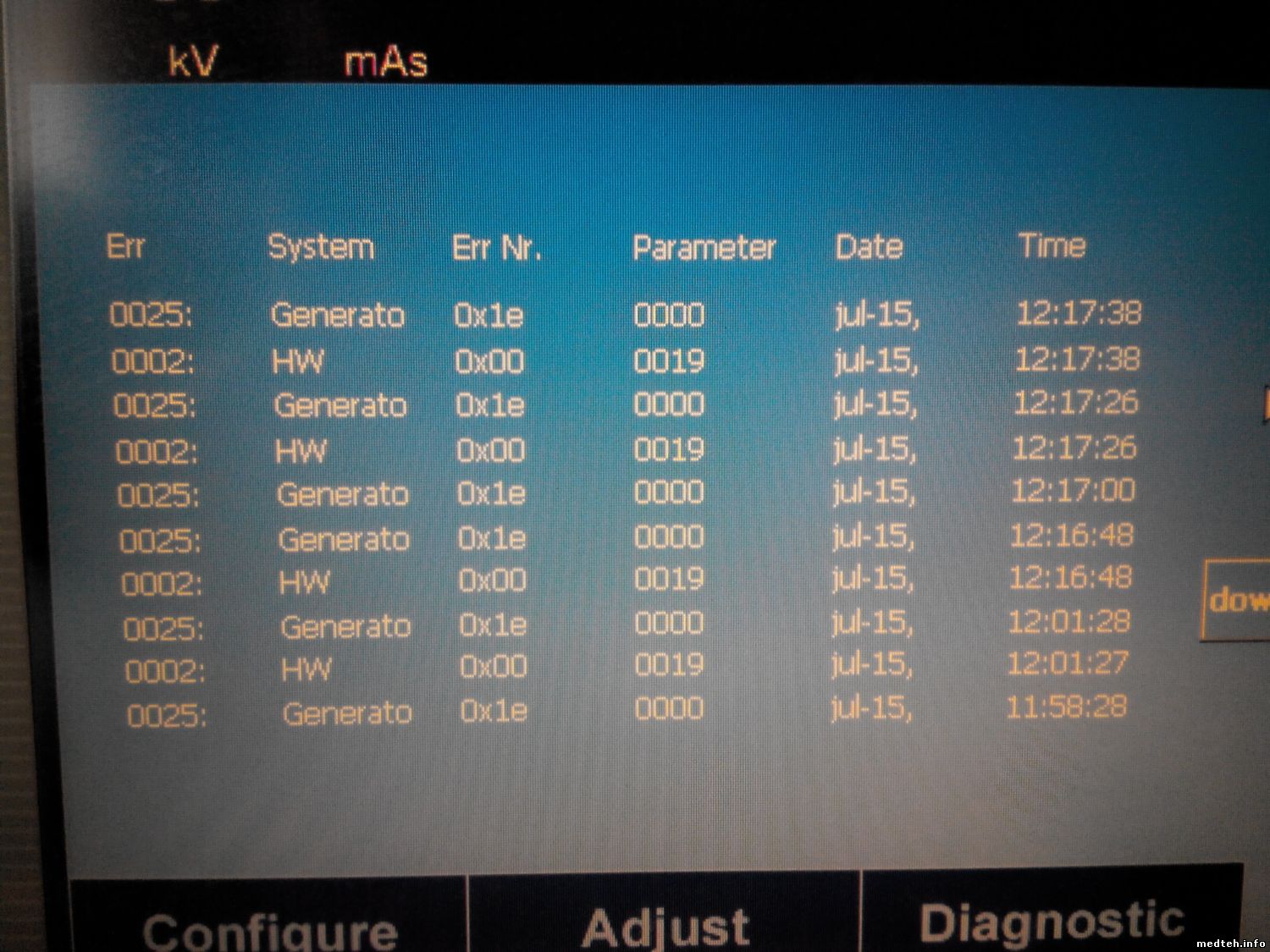 В нашей больнице установлен аппарат siemens multix pro с генератором polydoros. На днях вылезла ошибка 0x29. обнаружены были сгоревшие резисторы 100 Ом 10 Вт в плате инвертора. Их заменили. После вылезла ошибка 007. Питания 5 В, 15 В и 24 В в порядке. Уважаемые форумчане, подскажите что за ошибка.