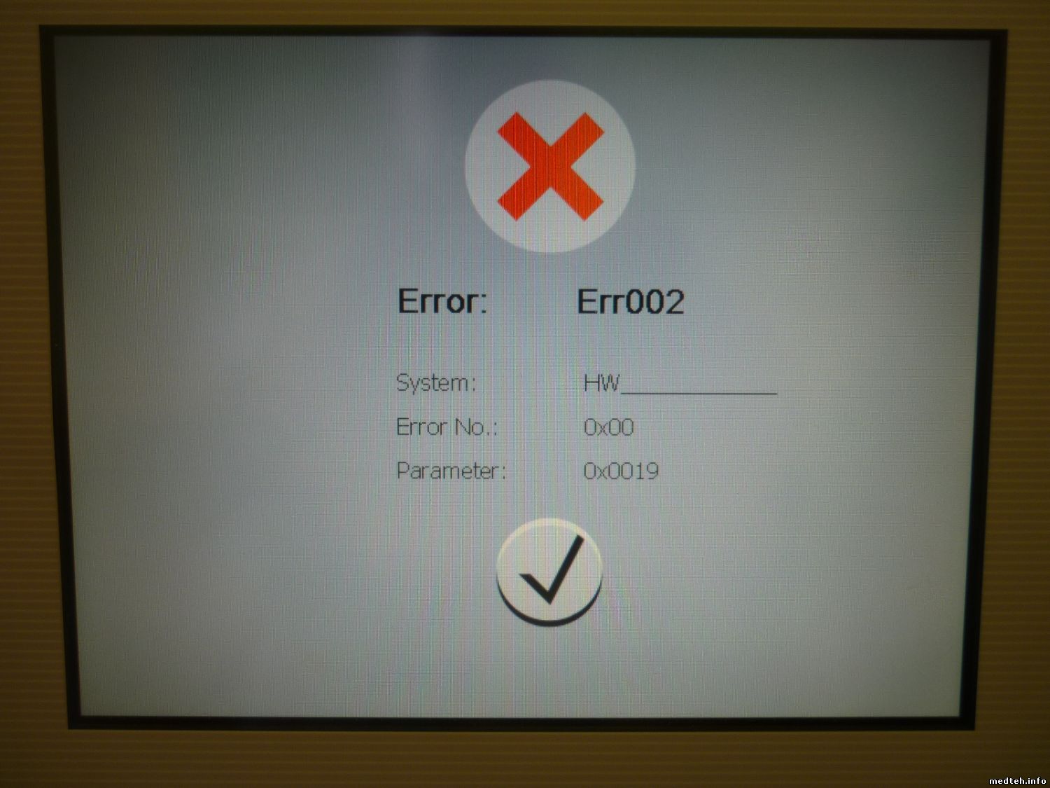 Err002: D300 MCB Ошибка Описание: • SW ошибка или D300 MCB неисправен. Возможные причины ошибки: • D300 MCB3 неисправен • FW на MCB3 не совместим с FW в сенсорной панели. Корректирующие меры: • Проверьте D300 MCB FW сенсорной панели за списку совместимости и. • Скачать FW снова за списку совместимости с D300 MCB. • Замените D300 MCB3.