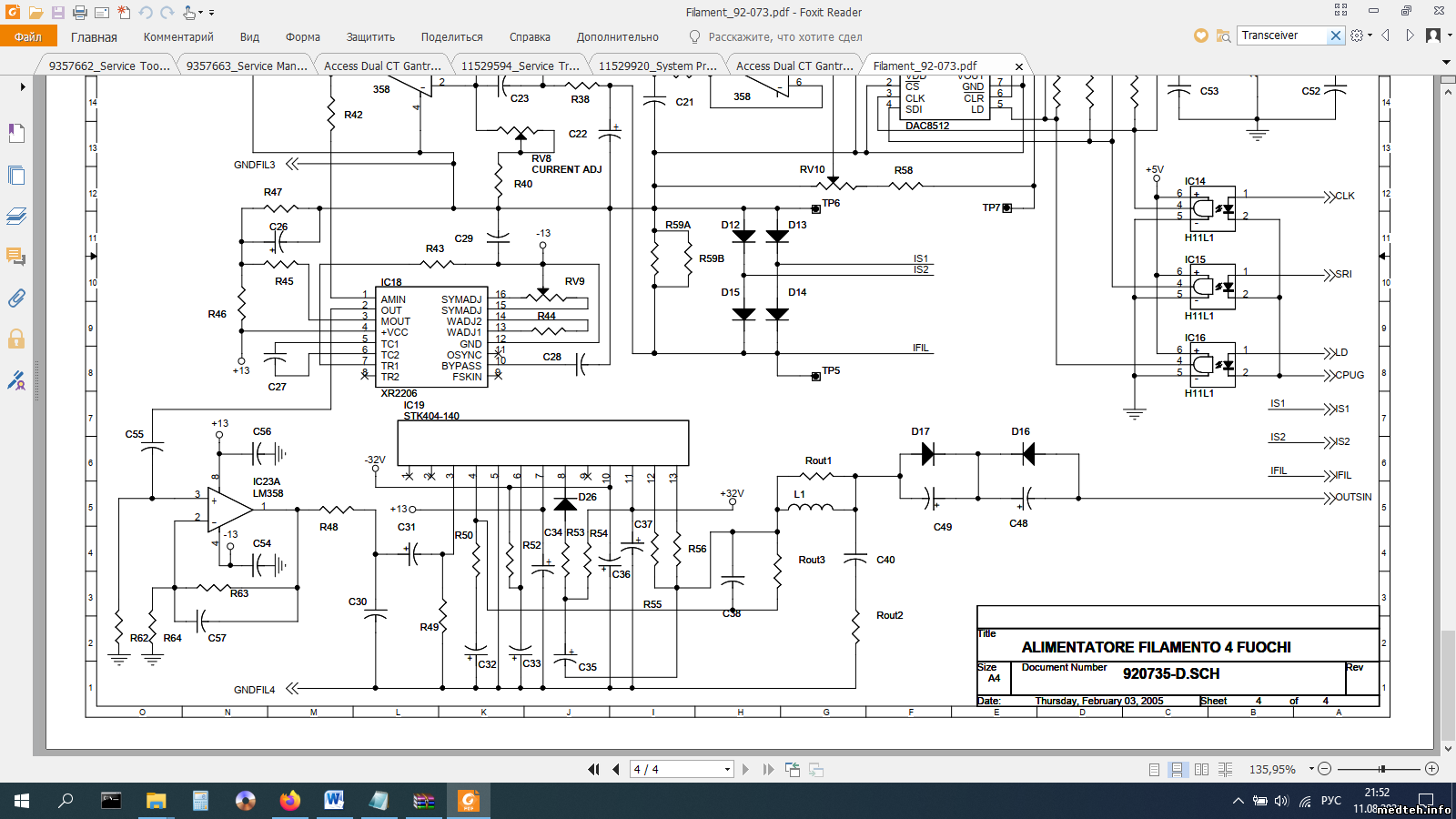 При включении аппарата выходили из строя предохранители F1 и F2. Были пробиты два полевых транзистора на плате STK404-140, заменил их, плата заработала, напряжения +13, -13 и +32 и -32 есть, горит только один светодиод LD4 и нет накала. Что ещё нужно посмотреть? У кого есть схема платы STK404-140 которая находиться на плате накала 92-073-5 или кто скажет номинал резистора R16.