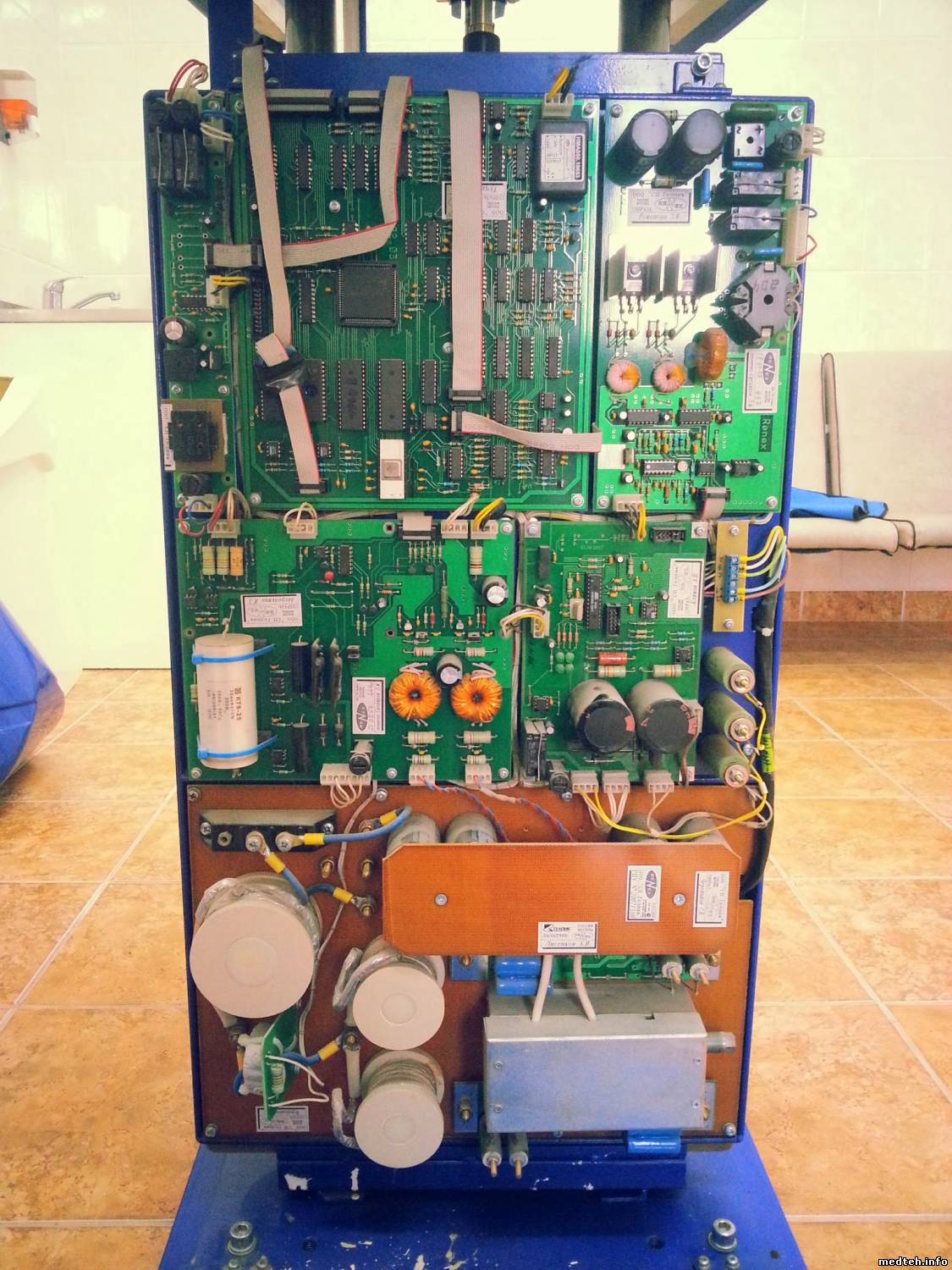 Sokolov_SKY, платы штативки находится с другой стороны, слева в верхнем углу - джамперы как на материнских платах от компов ( перемычки) - по плате зарядки - в центре 4-е светодиода, в процессе зарядка поочередно загораются и последний моргает при режиме поддержания напряжения на кондерах, стоит обратить внимание на 5Вт резисторы ( их 3-и штуки в центре питающего справа) часто уходят в обрыв