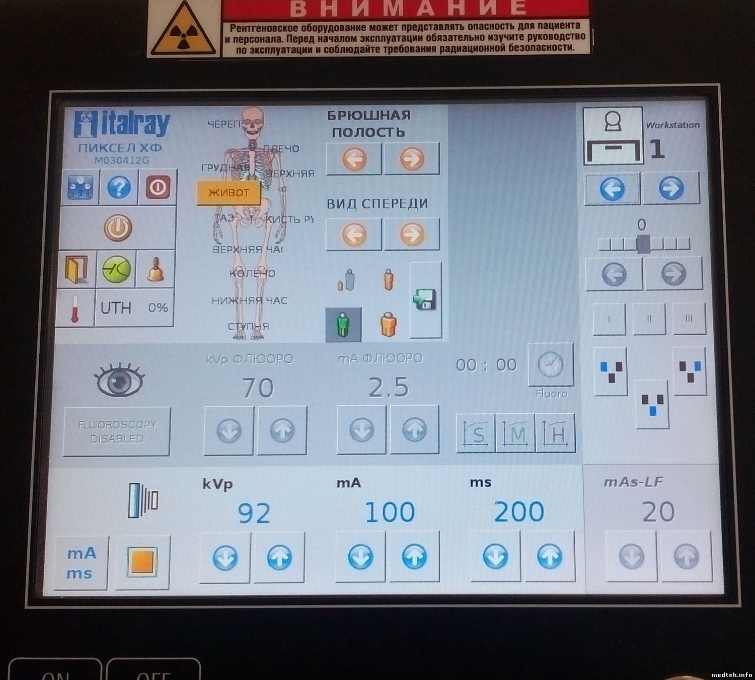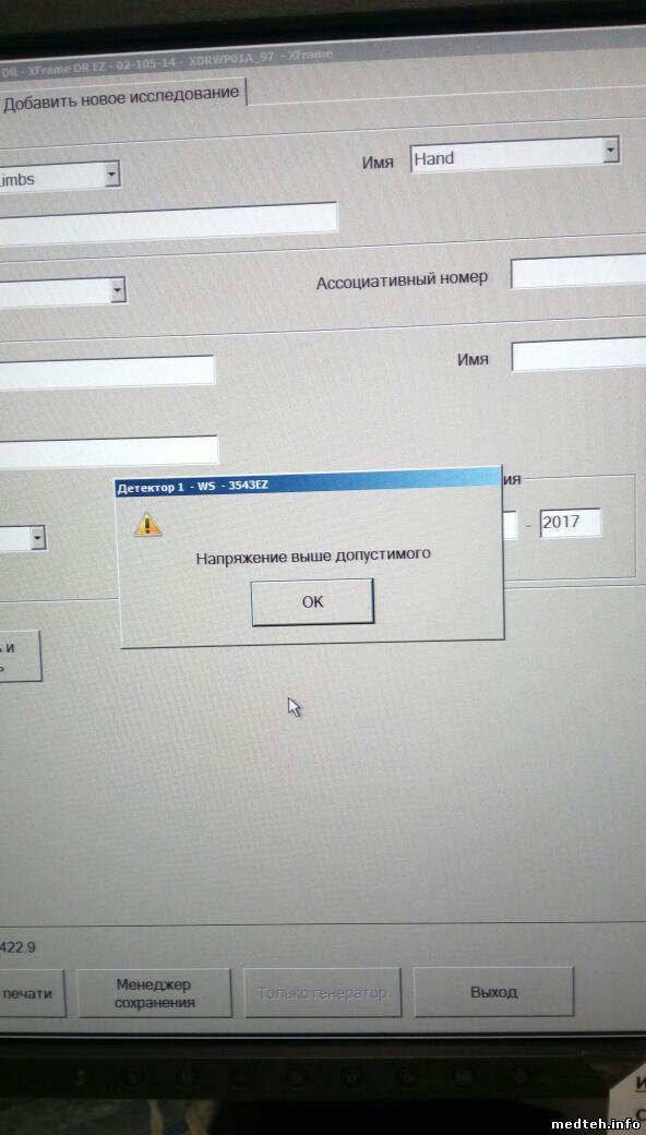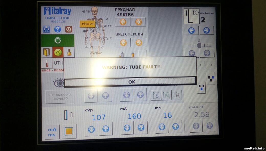 Рентген аппарат Italray на 2 р.м. с питающим Pixel hf 650 и цифровым детектором. Проблема в том, что на одном из режимов (обзорный снимок легких) на изображении возникает артефакт, а на ПУ питающего иногда появляется сообщение (фото в прикрепленных файлах). На АРМ лаборанта нет никакой документации, поэтому не знаю как правильно откалибровать детектор с рентгеновским излучением. И все таки проблема в детекторе или в питающем/трубке?