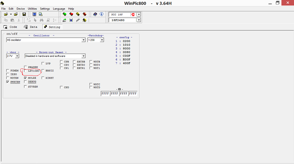 п.с. МК PIC18F2480 считать получилось с помощью простейшего PIC JDM программатора. насколько я понял биты конфигурации в порядке.