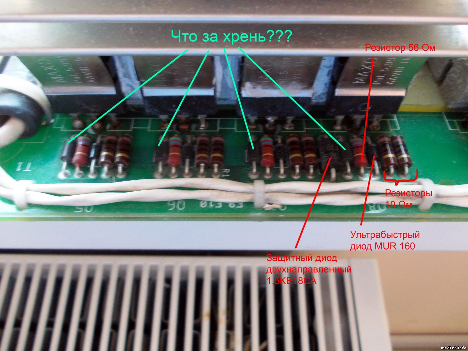 Диоды звони и меняй, только выпаивай. Обязательно проверь диодный мост на входе. Разбери и почисти пускатель. Не горит там больше ни чего. Главное при сборке транзюки хотя бы тестером по оммическому прогони. Цифровым они даже открываются. Подбирай по 4 боль не менее одинаковых. И приготовься, ввиду высокого качества деталей, может быть тренировочное включение с салютом. Главное персонал удали из кабинета. При обращении пишите мыло сразу.