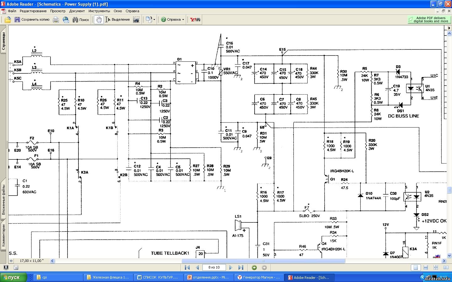 Померил на емкостях-400в, оптрон исправен, далее в схеме обозначение фильтра зарядки в квадрате, кроме резисторов нечего гореть.Такие проволочные резисторы горят часто.