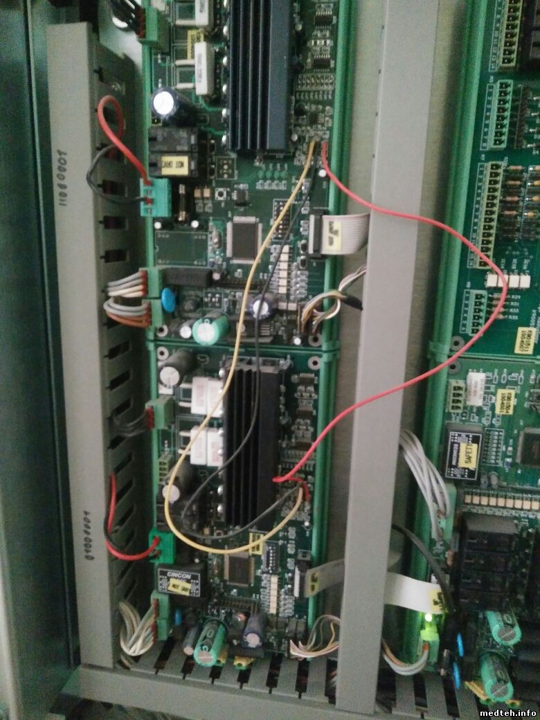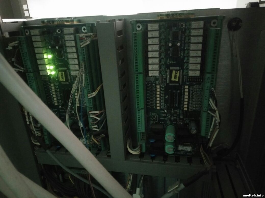 Здравствуйте, может кто что подскажет. Проблема такая: Baccara DX с пульта управления стол может двигаться только вертикаль - горизонталь, управление колиматором тоже работает, шторки двигаются и свет загорается, управление касетоприемником с пульта тоже работает. Все остальное не работает, ни движение излучателя вверх-вниз относительно стола, ни наклон, ни передвижение самой деки стола. Деку стола можно двигать только с панели на самом столе. Для входа в сервисный режим пульта стола нужен пароль. Во время загрузки диагностика проходит нормально, ошибки не выскакивают. При нажатой кнопке сброса(отключения концевиков) в шкафу возле плат драйверов, ситуация не меняется. Есть подозрения на плату драйвера. Индикация отсутствует вообще, хотя питание на нее приходит. В первую очередь проверил все преды, оказались все целые. Подскажите куда "копать", может была аналогичная проблема. Заранее спасибо.