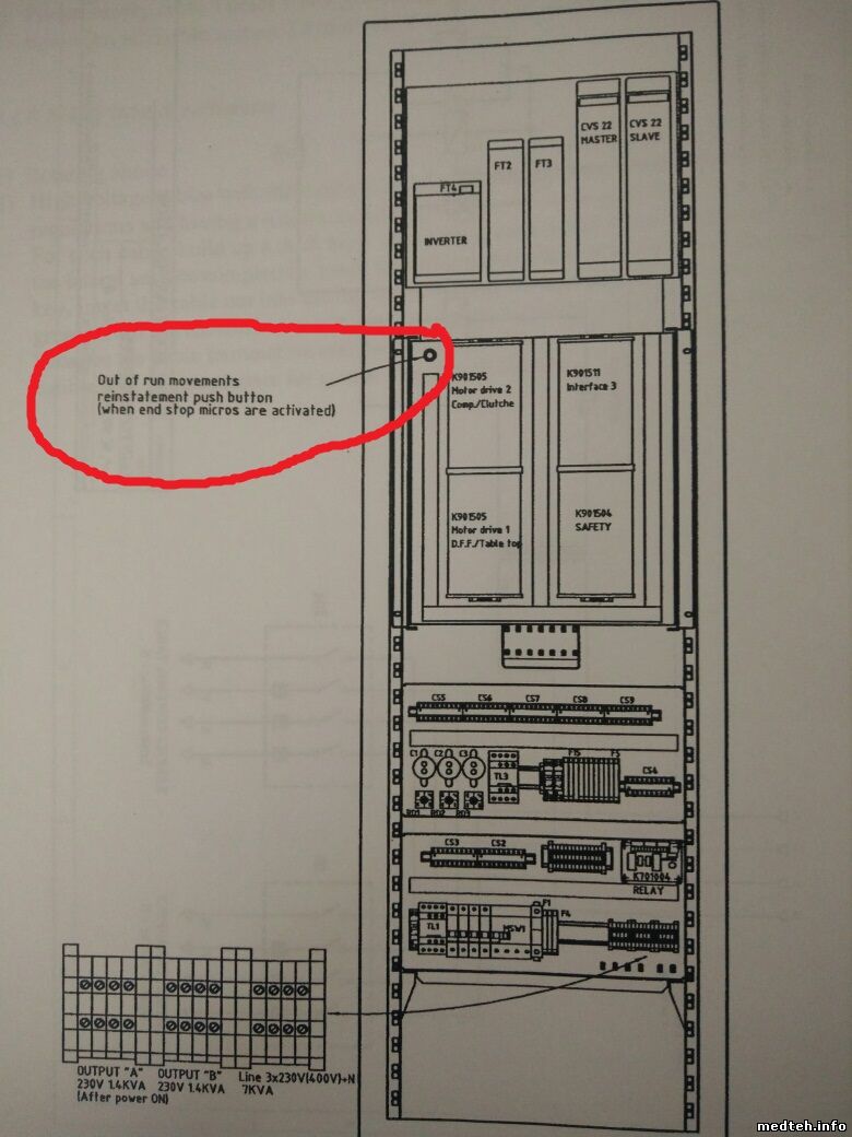 Здравствуйте, может кто что подскажет. С аппаратом не знаком. Проблема такая: Baccara DX с пульта управления можно изменять угол наклона стола, управление коллиматором тоже работает, шторки двигаются и свет загорается, управление кассетоприемником с пульта тоже работает. Все остальное не работает, ни движение излучателя вверх-вниз относительно стола, ни наклон, ни передвижение самой деки стола. Деку стола можно двигать только с панели на самом столе. Во время загрузки диагностика проходит нормально, ошибки не выскакивают. При нажатой кнопке сброса(отключения концевиков) в шкафу возле плат драйверов, ситуация не меняется.Проверили все предохранители, все целые. Подскажите куда "копать", может была аналогичная проблема?