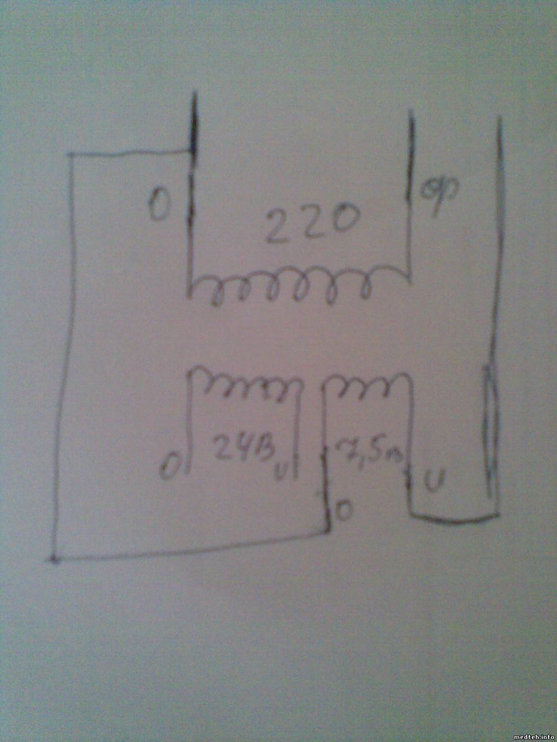 bvm53, филиппс-D-O-MAT ORALEX-65 это его полное имя,рентген довольно-таки староват,на голову приходит три конца земля и напруга.айболит сам его монтировал,при включении сгорел транс...Размотал его-первичная обмотка-два конца сеть и третий конец(автотрансформатор)7в идет на плату,вторичная 24в.подключил для проверки свой,но вот какая ерунда,мой имеет 7в на вторичной обмотке,включаю последовательно две обмотки,в одну сторону(0 первичной с 0 вторичной,второй конец на плату)все срабатывае,но неснимает,при напруге в сети 180в выдает на голову 110в.Включаю вторичную в другую сторону напругу дает,как и в сети 180в,снимает,но неотключаются реле,управления и высокого,лиш меняется звук зума,высокое отключается,но на голове остается 40в,пока неотпустиш кнопку совсем
