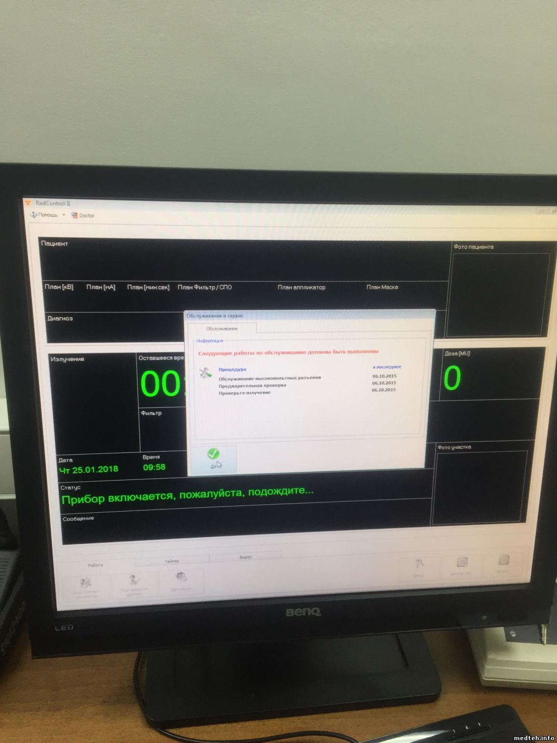 На рентгенотерапевтической установке Wolf T-200 c программой Радконтроль-II Версия 1.07.0013 при запуске компьютера появляется окно с предупреждением "Обслуживание и сервис". Вопрос, как убрать это окно? На работоспособность оно не влияет, но представители ЛПУ просят убрать.