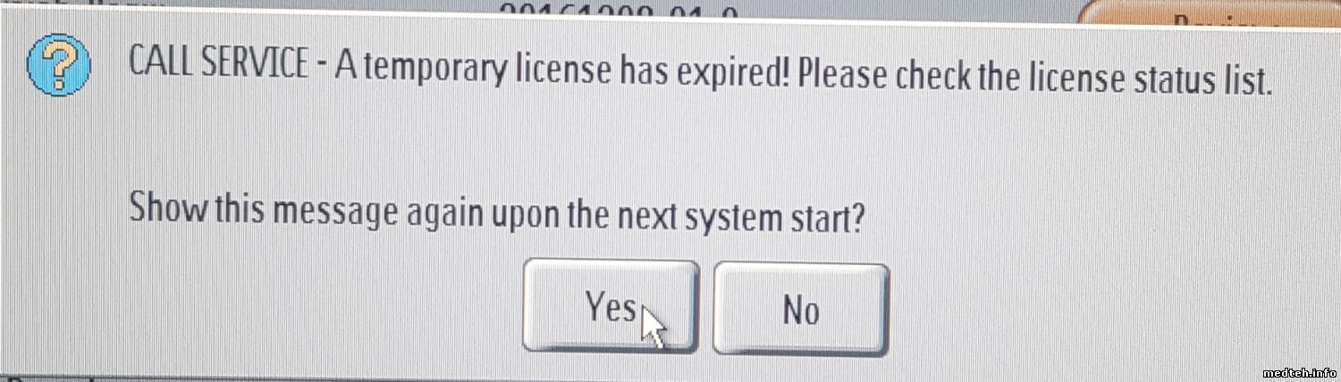 Верхний кожух имеет датчики касания. Он подпружинен. Надо нажать верху на кожух по очереди справа и слева ближе к стойке! Проверка концевиков касания запрашивается периодически. Про лицензию не скажу, вроде это сообщение не мешает работе аппарата.