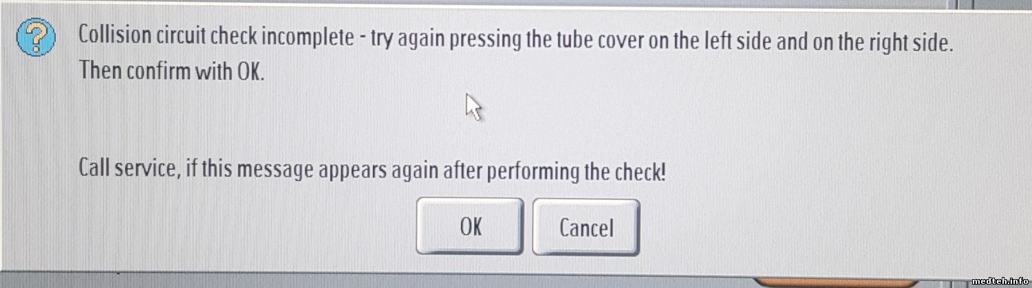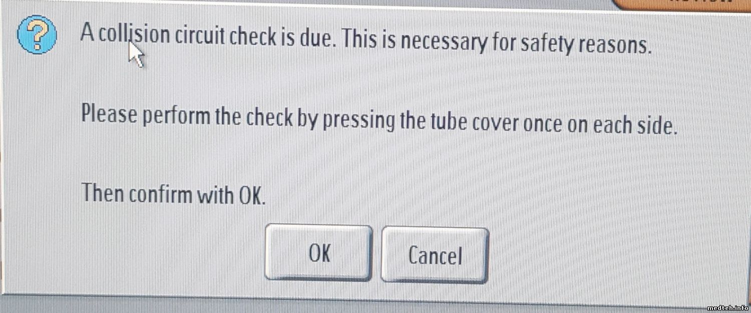 Протестировал работу аппарата. Сперва попытались сделать Collision check. Тщетно, ни какой реакции, не проходит сообщение! В инструкции аппарата рекомендовано проверить данную проверку при движении суппорта С-арм. Нажать на кожух при движении и суппорт должен остановиться! Но не тут-то было! Никаких реакции нет на кнопки вращения суппорта! Кнопки дублированы на самом суппорте и ещё ниже на основании детектора. Но ни одна из них не производит никаких действии! Пологаю, какая-то общая причина между этими двумя проблемами! Может питания нет на электрику суппорта...?