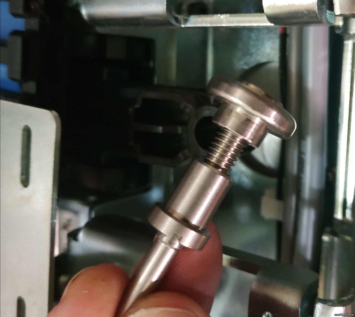 Треск и щелчки, не может отдать кассету, выпадает в ошибку. Открутилась гайка, крепящая шток подачи экрана. При установке регулировка высоты его должна быть такой высоты, чтобы в исходном положении шток был заподлицо с плоскостью установки кассеты, 19-20 мм выступающая часть штока.