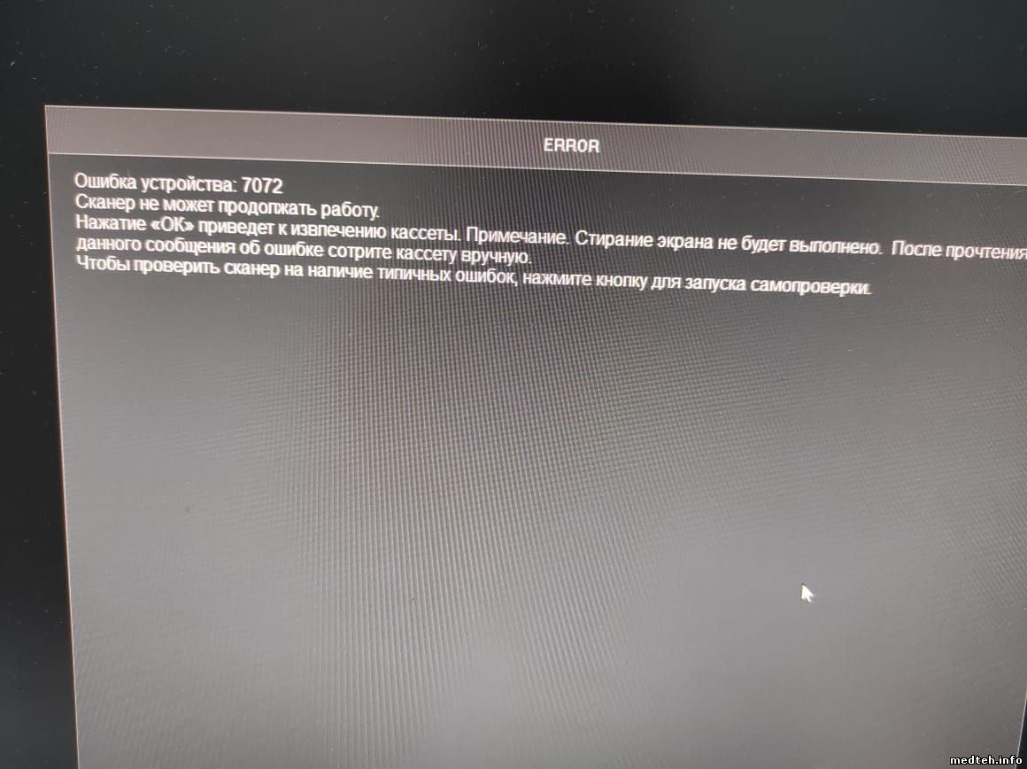 Дигитайзер (оцифровщик) после получения снимка с оцифровщика выплюнул кассету с не полностью вставленным экраном, и при этом появились ошибки: 7078, 7075, 7089.