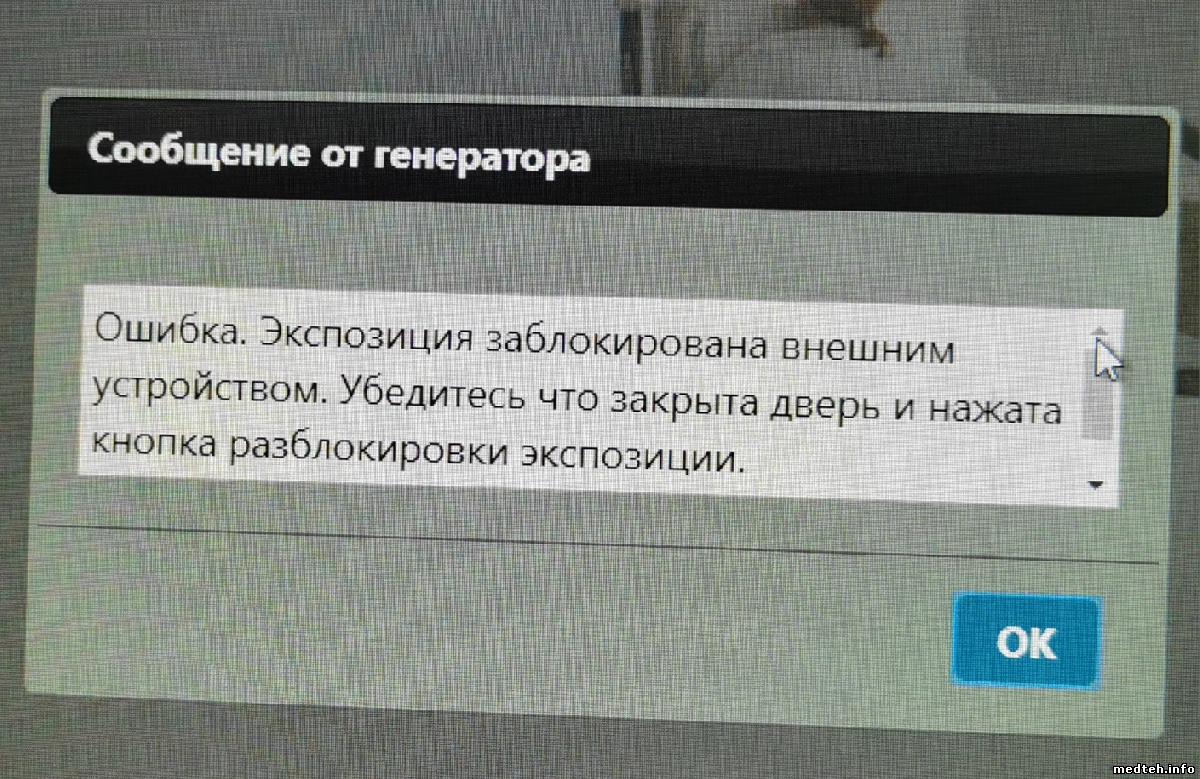 Здравствуйте, сегодня столкнулся с проблемой при работе с программой "Picksys"(ранее которой не приходилось пользоваться), установленной на лаборантском компьютере. При попытке произвести снимок - на дисплей выводится окно с ошибкой: "Сообщение от генератора, ошибка. Экспозиция заблокирована внешним устройством. Убедитесь что закрыта дверь и нажата кнопка разблокировки экспозиции". Дверь закрыта естественно при этом закрыта, а вот где эта таинственная "кнопка разблокировки экспозиции" - мне так и не известно. Если кто нибудь работал с данным программным обеспечением и сталкивался с подобной проблемой - подскажите пожалуйста как действовать или в каком направлении двигаться.