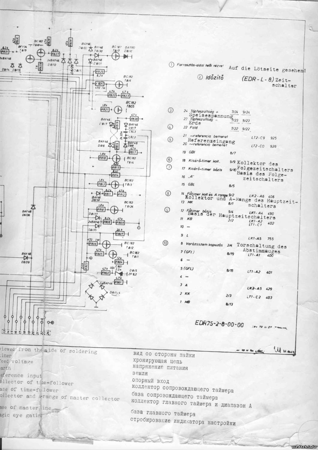 Помогла инструкция от zoil107 по установке перемычек фокусов на плате L1. Ваше участие ускорило мои поиски сн. экспозиций в аппарате. Отключил высокое (снял с генератора S1,R1,T1), подключил запоминающий осциллограф к плате L8 контакт-1 разьема. Нажимал кнопу и смотрел длительности. Они оказались какие-то странные, одинаковые с 0,03 до 0,1s- 350мс. Открывал верхнюю панель для проверки галетника кк1 и перепаял пару ветхих резисторов. Мне такая работа вконец надоела и я проверил обвес, соединение между платами. P.S. Выдержки времени пришлось подстраивать добавлением параллельных резисторов для 0,01-0.04 s. На плате выставил точно , а под трубкой время увеличилось на 3-4 мс . Замедление скорее из-за сн. контакторов. Разберусь с торможением трубы и тему пора закрывать. ANDRY