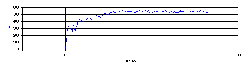 Если это осциллограмма анодного тока, то это пример неправильной настройки, а именно: 1. В начале просматривается импульс подмагничивания и это хорошо, потому что правиильно. 2. Анодный ток выходит на номинал почти асимптотически в течение 50 мс и это допустимо. 3. Анодный ток подходит к номиналу снизу и это плохо, потому что в начале снимка анодное напряжение выше номинального. 4. Разбаланс тока около 150 мА и это очень плохо, потому что перенапряжение в начале снимка велико, что может привести к пробою высоковольтной цепи. Выводы: читай выше