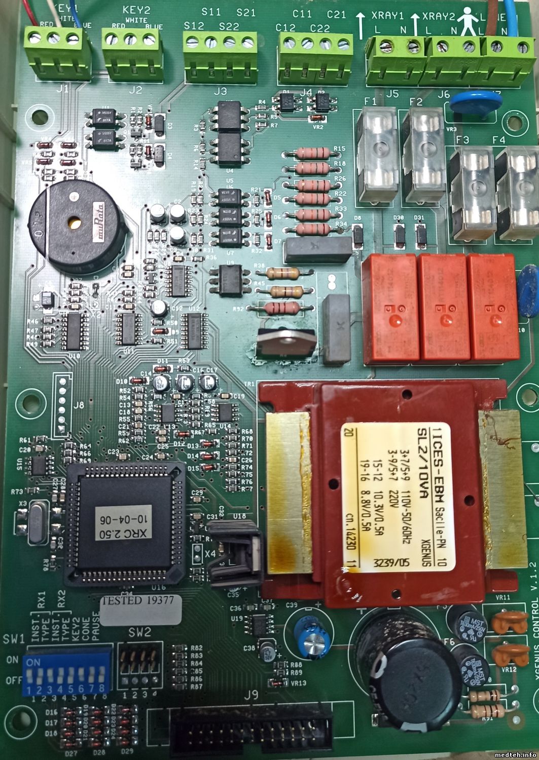 Нужна схема, в идеале сервисная инструкция. Аппарат на столе на проводах подключен напрямую без разъёма к моноблоку (моноблок АС - два провода питания, третий земля). При нажатии на кнопку пульта высвечивается ошибка "Е00", потом "err", при этом излучение появляться на доли секунды, это видно по люминисцентному экрану з кассеты. Пробовал подключать на другой выход моноблок - проблема такая же, только ошибка "Е01". Вместо моноблока цеплял лампочку накаливания 100 ватт. При нажатии засвечивается на доли секунды, потом ошибка. Симистор Целий на всякий случай поменял. Прошу, у кого есть схема или от руки какие-то наброски, поделитесь ими. Нужны, чтобы разобраться как эта плата управления понимает, что моноблока нет, когда он на самом деле-то есть. Мануал знайшов тут в хранилище но схемы там нету