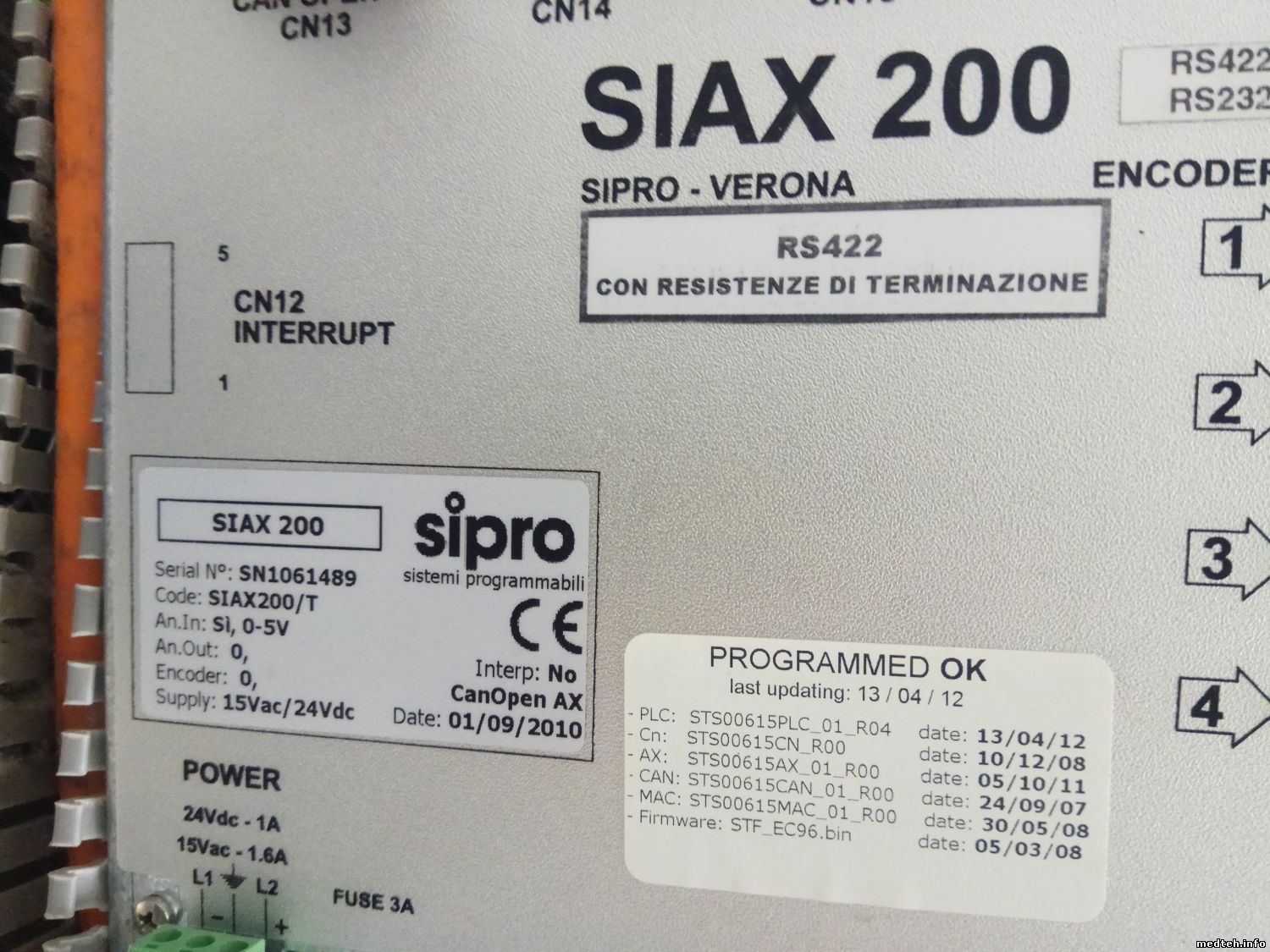 В продолжении НЕ РЕШЁННОЙ проблемы на GILARDONI "QX-A": В ходе исследования неисправности, выявлено следующее: При включении аппарата, с прогрузкой программы пульта управления- идёт процесс самодиагностики, при завершении которого выходит сообщение об ошибке ERROR RS422 CanTableError, CAN KeyBoard, CANRXBoard всё это ведёт к блоку контроллера SIAX200 (производитель SIPRO) который не даёт команду включения эл.двигателям телеуправляемого аппарата. Не сталкивался ли кто из Вас с контроллером SIAX200???? Как его прошивать (Есть подозрение, что прошивка слетела)