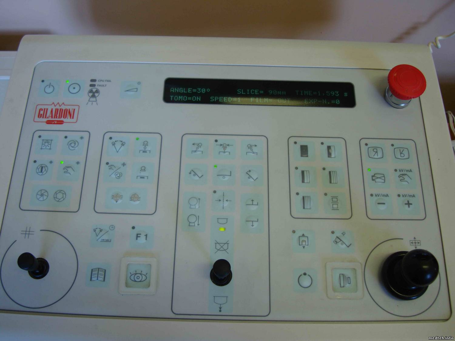 Уважаемые коллеги, пришлось столкнуться в ремонте с рентгеновским телеуправляемым комплексом GILARDONI с питающим DILOGIX HF 165. Единственном, кстати, в своем роде. Больше таких у нас в области нет... Ремонтной документации, кстати, тоже практически никакой нет. Только manual для персонала. Пару лет ТО и ремонтом занимался дяденька, который приезжал аж из Сибири. (совсем географически рядом, пару суток на паровозе... ) Понятно, что и "влетали" такие визиты мед. учреждению "в копеечку", ну и отказались от такой практики в конце концов... За год бывали поломки, но как то удавалось интуитивно сделать. Сейчас проблема несколько серьезнее. Симптомы такие- комплекс не хочет работать в режиме скопии, снимки и томо проходят с любыми кассетами и на любых уставках. Сообщений об ошибках при попытке вкл. скопию нет, этот режим просто тупо не включается ни как, ни с пульта, ни педалью. Если установить кассету, то она при нажатии педали входит в бункерное положение и на этом все, аппарат стоит. Если упорно стоять и давить педаль, то "вылетает" сообщение GENERATOR READY TIME OUT. Возникает ощущение, что генератор не получает какого то отклика от штативного устройства. Какого? Тайна покрытая мраком... Если судить по аналогии с подобными комплексами, то как будто, все должно включаться без проблем... Однако не включается, есть какая то "кривизна". Излишне говорить, что "перетрясли" все предохранители и по возможности проверили питающие напряжения. По возможности- потому, что схем то нет... Лаборант тоже "допрошен" неоднократно и с пристрастием- результат практически нулевой. Буду очень благодарен всем, кто сможет чем либо помочь и удастся определить если не неисправность, то хотя бы направление поиска. Ведь порой достаточно пары слов. (а может есть какие то доки? ) С Уважением.