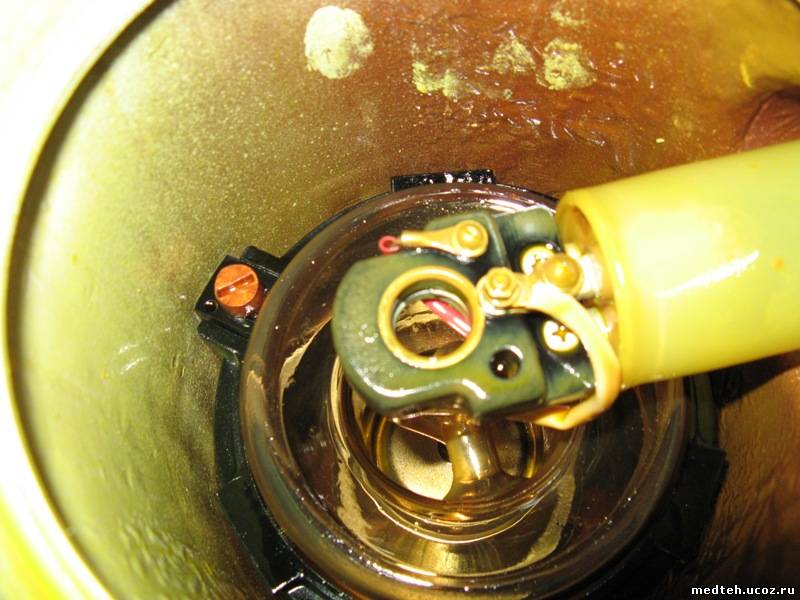 Про накал на старом аппарате одну трубочку на 12Ф7 менял, вот фото концов накала фокуса в кожухе. Может кому пригодится расположение выводов на стакане.