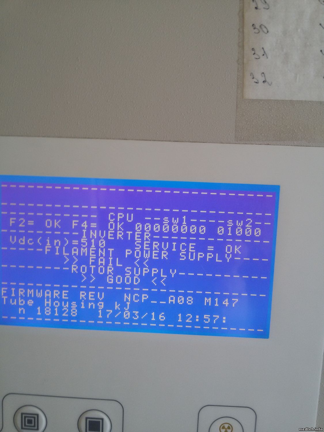 Маммограф МР-01-ТМО 2006 г.в.. На большом фокусе и на автомате и на ручном режиме при кВ больше 26 снимок прерывается и вылазит "сообщение1"(первый файл). При попытке перекалибровки на малом фокусе все в норме, а на большом получается картинка "калибровка"(второй файл). Что значат символы RRR в доках не нашел. То ли тока совсем нет, то ли не меряется. Попробывал откалибровать защиту накала по току и напряжению - померял - расхождение в контрольных точках было очень большое. Выкрутил потенциометры, допуск как в инструкции. Изменений почти 0. При попытке снимка вылазит сообщение2. mAs стало больше, но все равно не работает. Вопросы: - как расшифровать/скачать сообщения об ошибках? По сути этот аппарат и маммограф МТЛ одно и то же (внутри итальянец на 110% ) но у МТЛ предусмотрен COM-порт, а здесь нетути. Ну и конечно жду предположений по поводу неисправных модулей - труба, плата накала или еще чего?