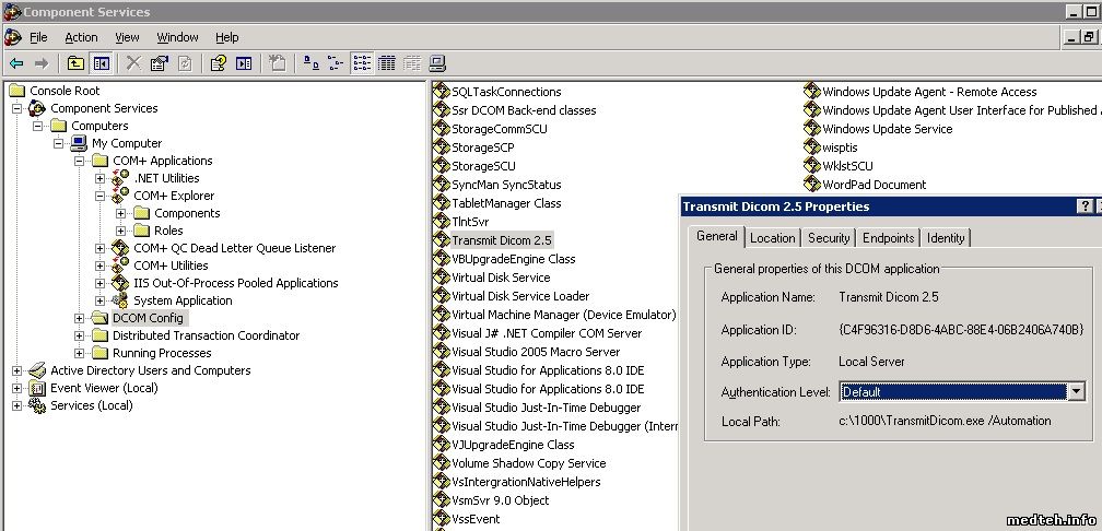 Как-то все это было запутанно, но как ни странно отправка работала. Иногда переставала работать отправка снимков, было видно что растет список в файле очереди. Помогало убивание процесса TransmitDicom с запуском его руками, после этого начиналась отправка снимков из очереди. Если сразу после перезапуска процесса на клиентской дире попробовать отправить снимок, то дира ругалась на ошибку COM-объекта.