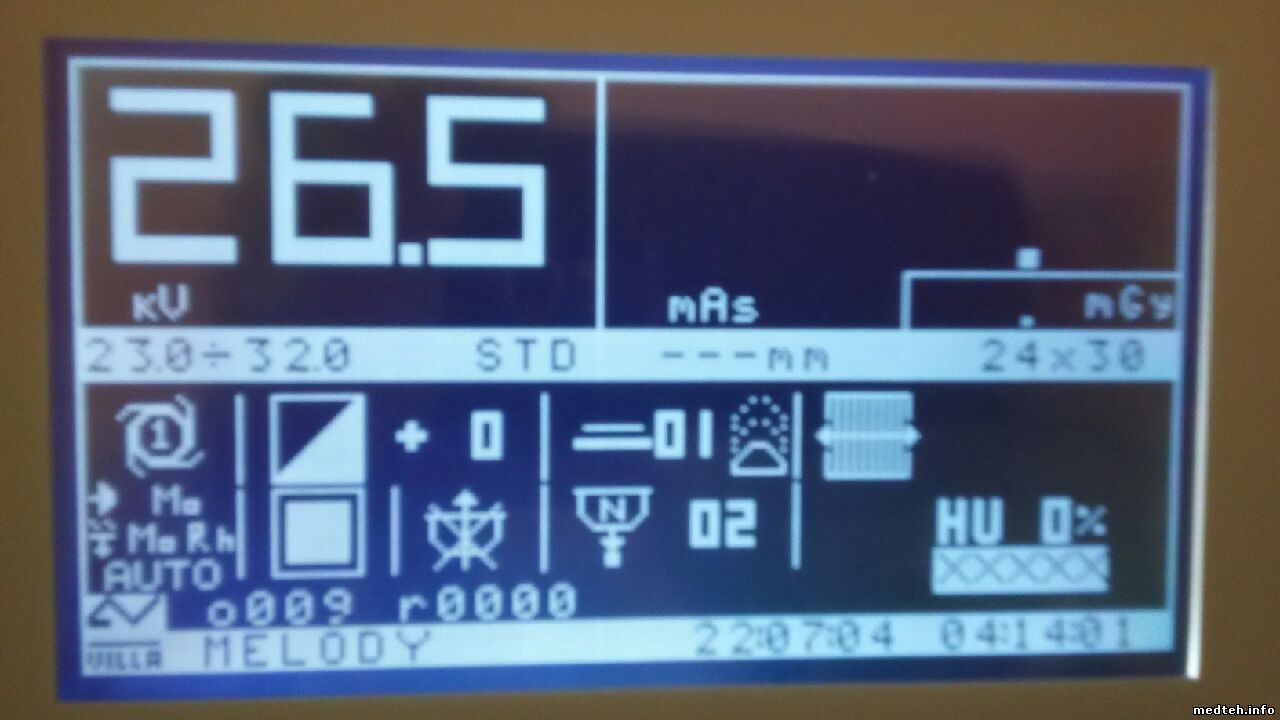 Маммограф MELODY II. В автоматическом и полуавтоматическом режиме при нажатии клавиши снимка выдаёт ошибку: "IN-ACTIVE". В ручном режиме при установке напряжения и экспозиции при нажатии клавиши снимка включается трубка и через некоторое время (~30 сек) выдаёт ошибку: "LOW ANODE CURRENT". Подозреваю экспонометр. .