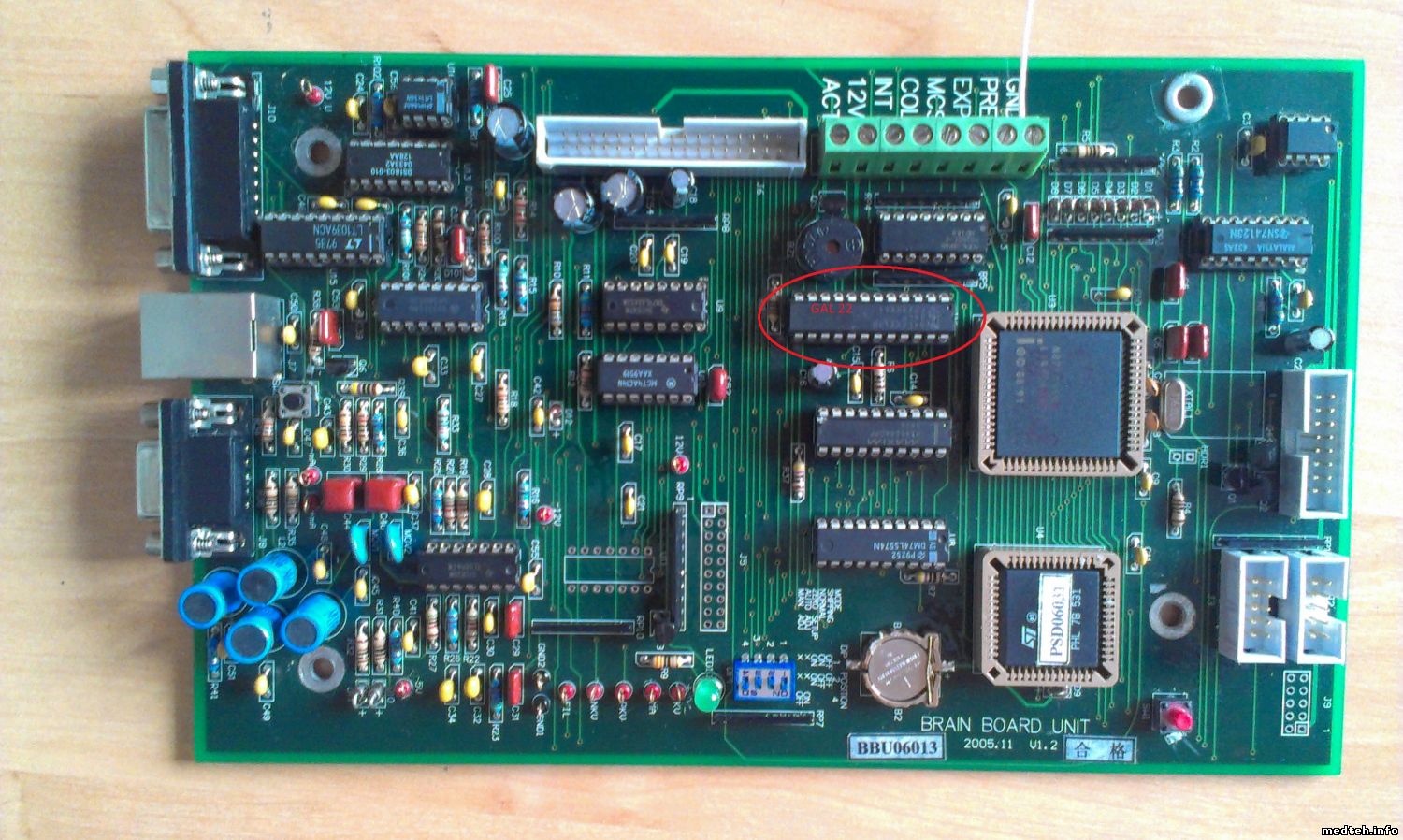 Добрый день. Подыму тему по аппарату LDR-01B. Есть аппарат с ошибкой Err 07, код ошибки говорит о том что отсутствует накал. Нить накала в трубке цела, плата накала тоже исправна.В ходе проверки было выяылено , что отсутствуют импульсы управления драйвером платы накала на контрольных точках Drive 1, Drive 2, эти импульсы должны приходить с микросхемы ПЛИС GAL22 с платы brain board unit, дальше проследить сигнал без схемы невозможно. Возможно кто нибудь имеет документацию на данный аппарат, попытки связаться с заводом изготовителем не увенчались успехом, фирма поставщик установившая данный аппарат тоже молчит.