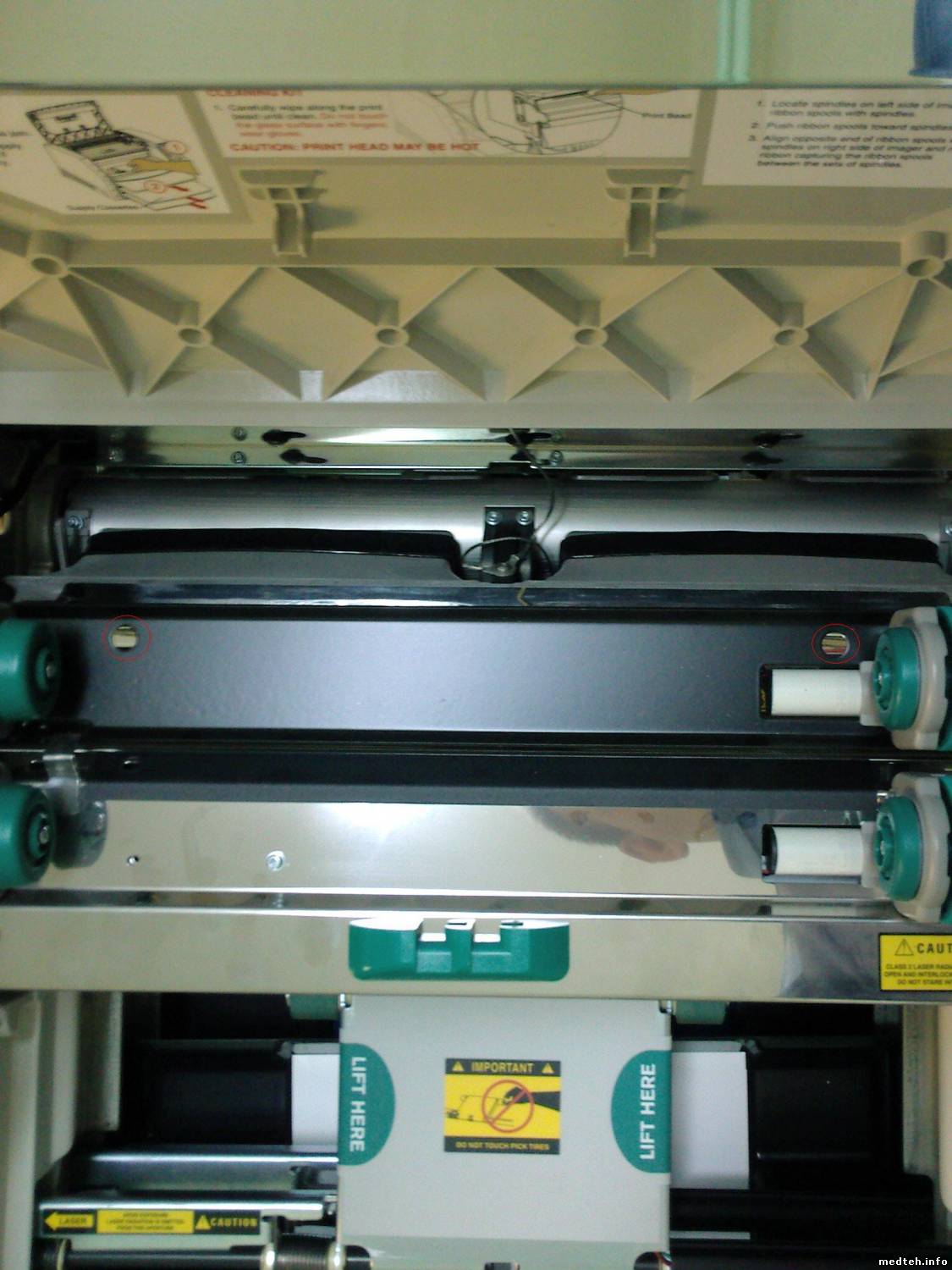 на фотке вид сверху( выделено красным) видно сервисные отверстия для винтов которые стоят с верху на блоке питания, а прикасаться к валикам перемещения боязно, и такое ощущение что нижняя это сама лазерная камера ( если смотреть сзади то туда уходит пучок проводов
