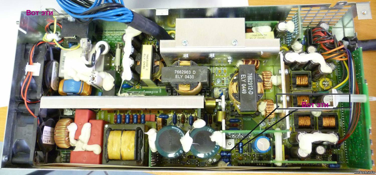 Про кондёры я помню - внимательно изучаю их (выпаиваю и прозваниваю). Вот в приложении фото с обратной стороны печатной платы. Там напряжульки я отметил. medtechnik66, а Вы где меняли кондёры?