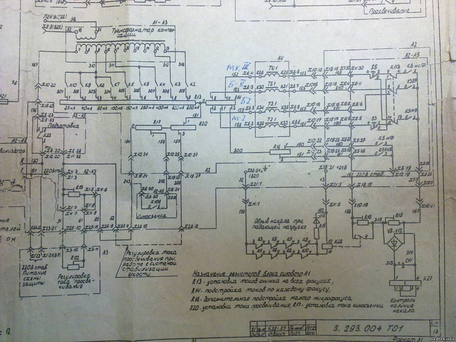Наша служба и опасна и трудна...Привет всем, сразу хочу извиниться перед участниками,за то что бросил ремонт ибо навалилось немало оборудования требующего более срочного ремонта. В общем сам аппарат "перепахан" в пух и прах, защита срабатывала на малом фокусе т.к отключен накальный транс(был отключен до меня,видимо не исправен),работал только большой фокус,но высокого все равно не было ни на 1-м,ни на 2-м рабочих местах.Перекопал пульт, нашел не рабочую п2-к на выборе рабочего места(попала вода),перечистил реле и пускатели(хорошо в генератор не полез) Вышел на реле к17(по советам участников и букваря)не срабатывало из-за к3 в блоке а6,высокое пошло,защита не срабатывает,НО не работает реле количества электричества,т.е снимок не завершается автоматически. буду копать дальше. СПАСИБО ВСЕМ ЗА ПОМОЩЬ!!!