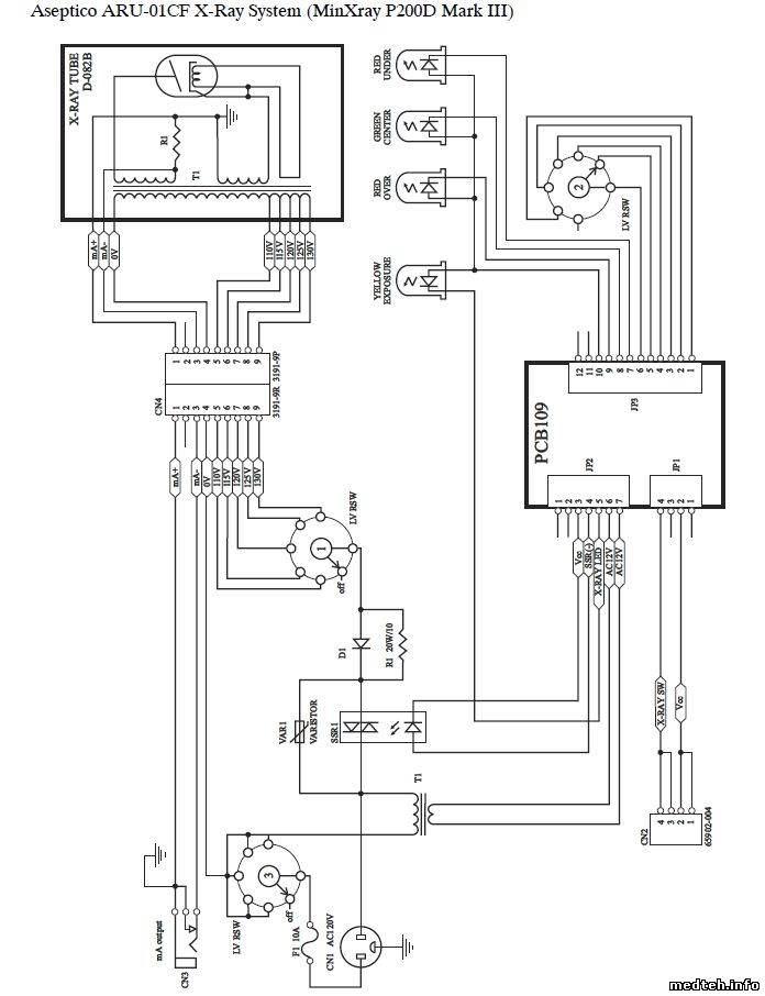 - вот схема от другого мобильного рентгена, у вас стоит инвертор, здесь впрямую от электросети, но для понимания принципов вполне понятно -