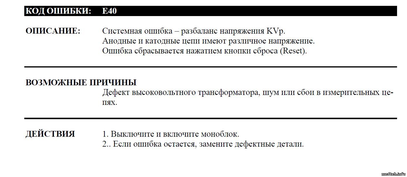 Тоже столкнулся с такой ошибкой e40, появляется после некоторого простоя аппарата после снимка. Пока не нашел причин. И сам не видел как ошибка возникает.