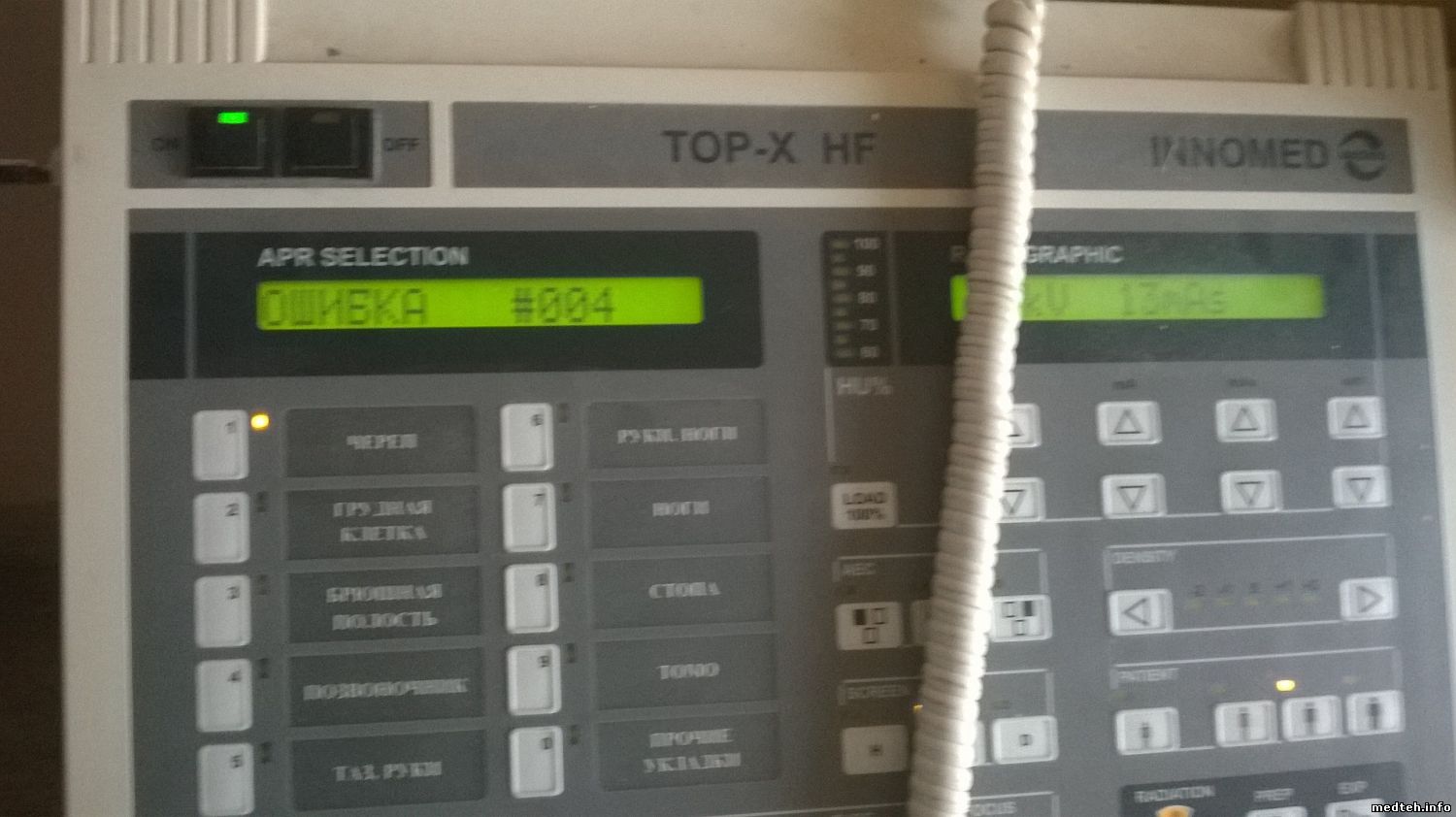 002 – нет связи с пультом управления рентгеноскопией. Посмотри есть ли все питания на выносном пульте. на пульт далжно быть подано питание вместе с включением рубильника