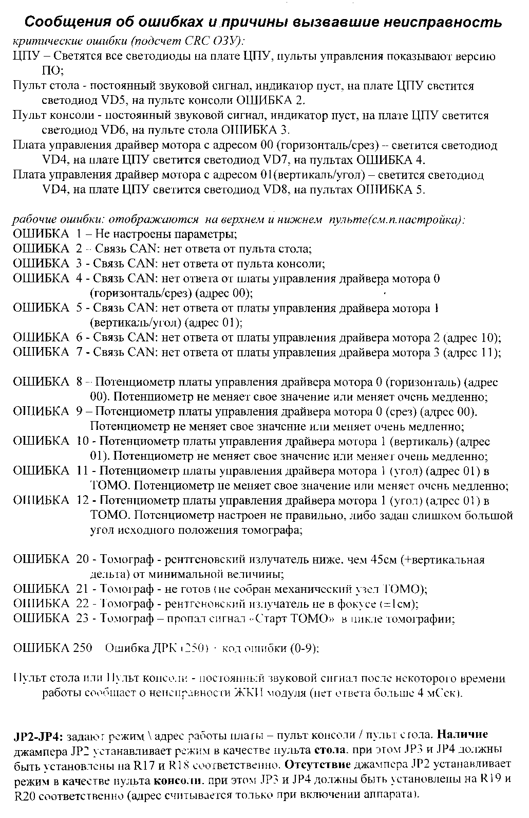 У Вас есть техническое описание (описание ошибок и проведение программирования)?