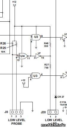 Вообщем проблема заключалась в том что контрольный винт находящийся в емкости с проявителем , должен через проявитель замыкаться нА массу, таким образом на входе элемента не-или u4 получаем два 0 а на выходе появляется единица. Условия эксплуатации не менялись, проявитель тот же , обрыва от разъема до винта нет, сделали перемычку 1 и 3м контактом. работает нормально ,контроль проявителя визуально.