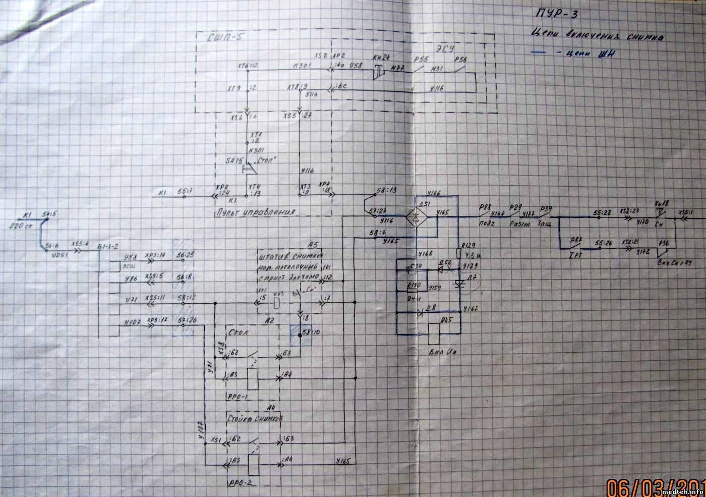 speshlist, впредь указывайте тип питающего устройства. Всё, что я изложил выше, относится к УРП-125/800, а у Вас ПУР-3. Прилагаю "поднятый" участок схемы, из которого видно, что обойти контакт решётки стола снимков можно перемычкой между 58:12 (цепь У71) и 58:10 либо совсем напрямую перемычкой 58:12 - 57:27 (цепь У116).