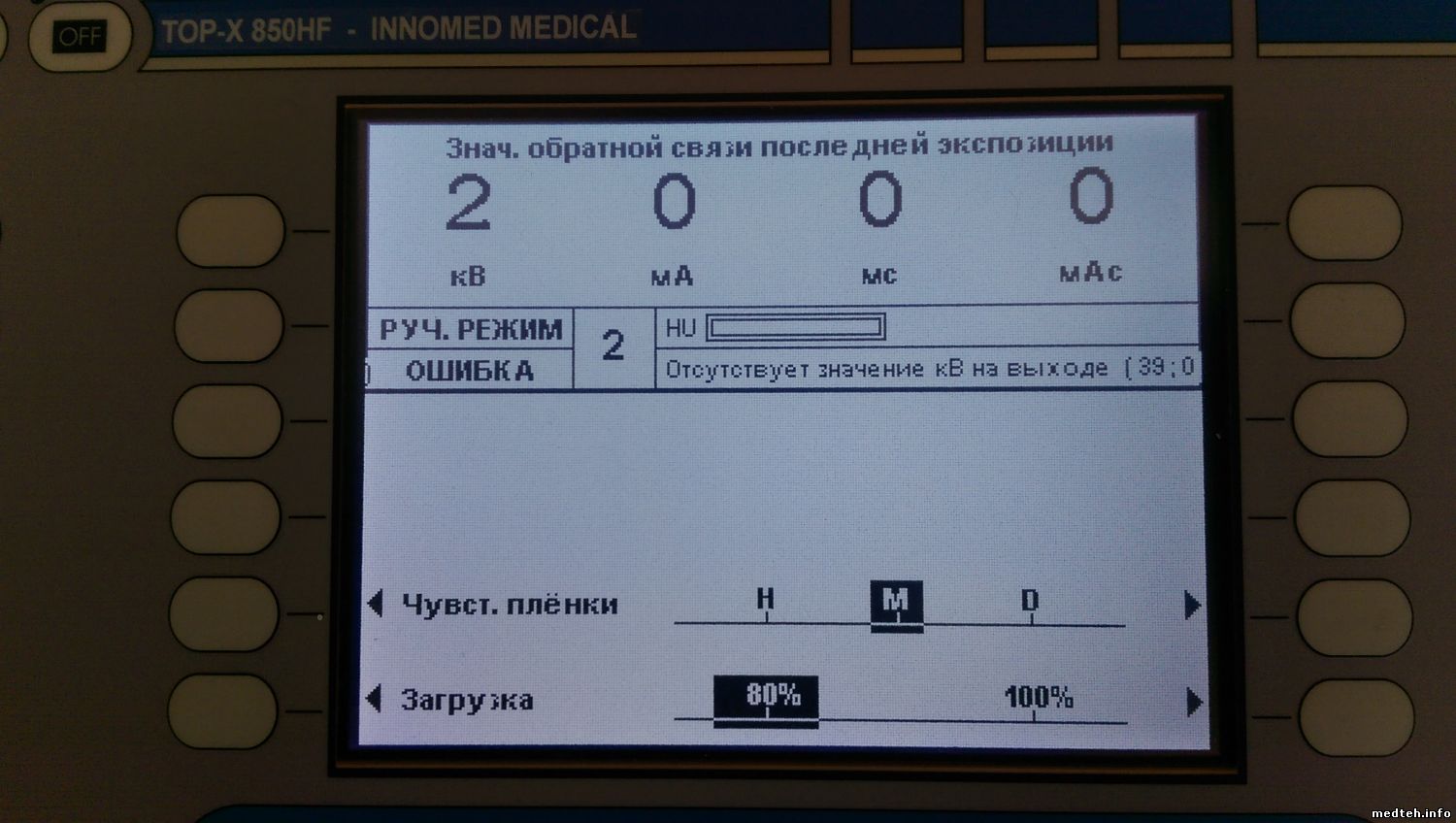 Код 39 Причина Выходные кВ на излучателе ниже, чем 75 % установленного набора при экспозиции после 3 мсек для рентгенографии или после 300 мсек для рентгеноскопии. Действие