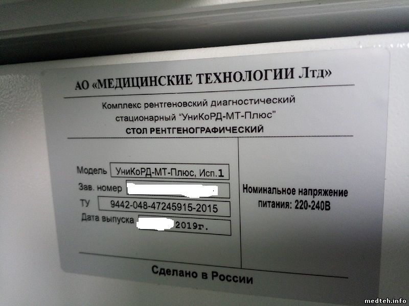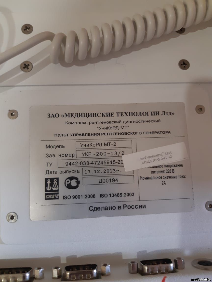 Комплекс рентгеновский диагностический "УниКоРД-МТ" различной комплектации (см. по ссылке рег. удостоверение) в данном случае на 3 рабочих места, производства ЗАО "МТЛ", Москва, Россия.