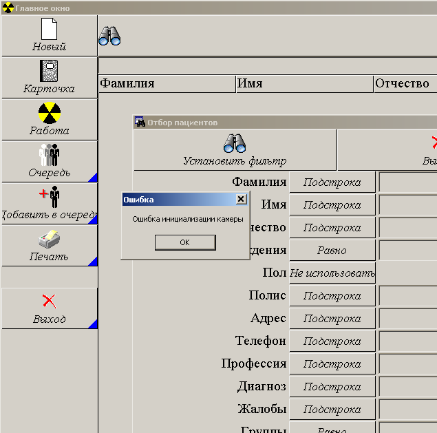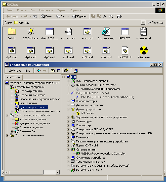 после переустановки арм лаборанта и доктора, установки всех драйверов при запуске на арм лаборанта xray.exe выдает сообщение "ошибка инициализации камеры". сама программа работает, и арм доктора тоже работает. но при установке на арм лаборанте cmd5 выдало ошибку 13. самой платы PCI7200 как на других изделиях в этом варианте нету. подскажите что делать и где искать ошибку? p.s. до переустановки все работало поэтому "обрыв" и "неконтакт" автоматически отпадают, проблема в программах или драйверах, но вот где неясно p.p.s. драйвер на PCI-Device установил 7200 и pcis-dask тоже поставил, и плеора 1000 установил на сетевую плату intel pro/1000