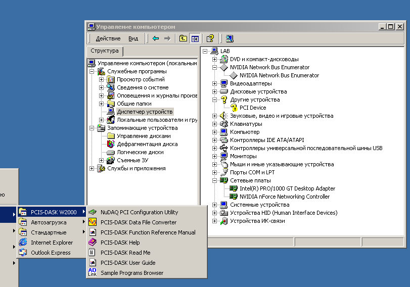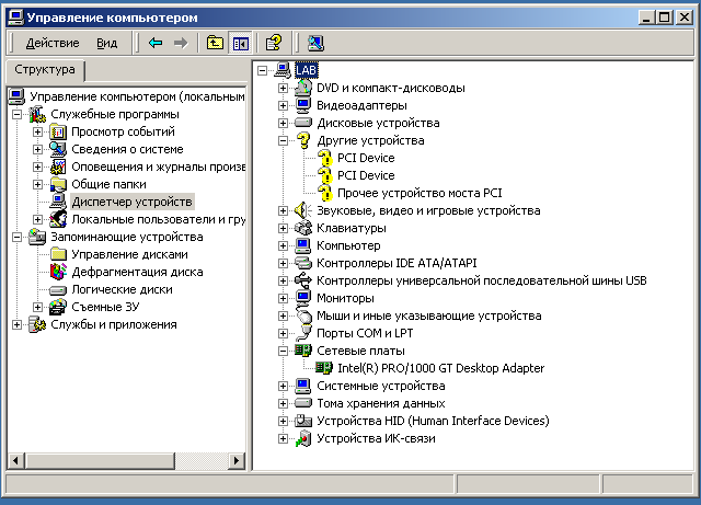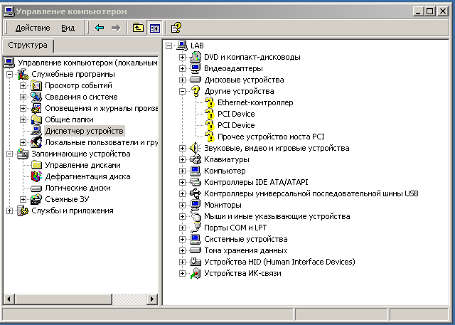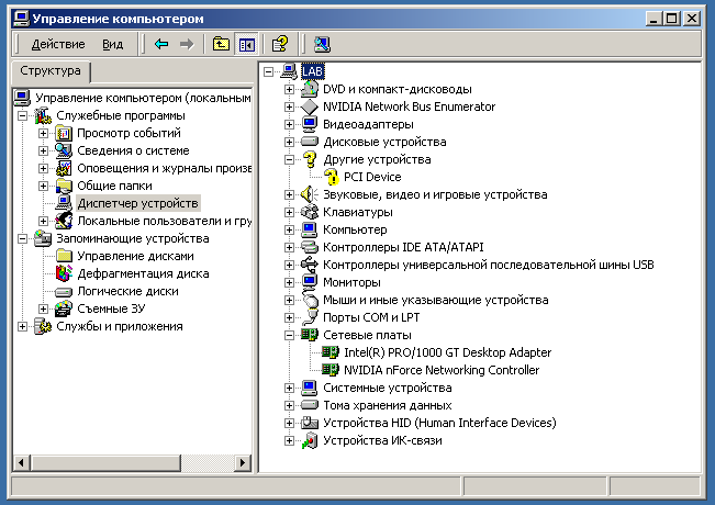 не установленный PCI-Device я так думаю это звуковая плата встроенная, т.к. пробовал на нее ставить все возможные драйвера и порой комп глючил по страшному, переустанавливал этот комп лаборанта раз 20 наверное не могу понять в чем проблема...(((