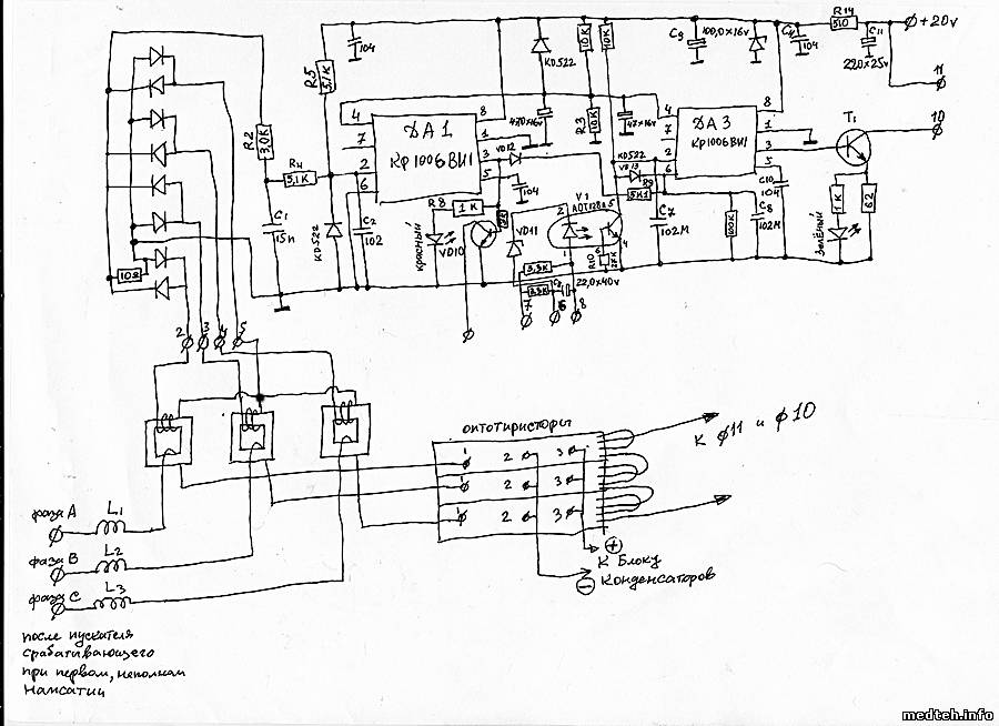 Отсоединили нагрузку от конденсаторного блока и принудительно включили светодиоды оптотиристоров.